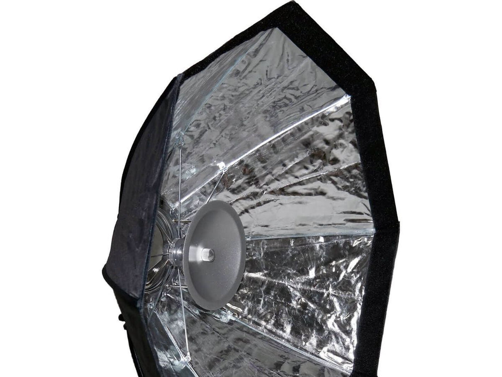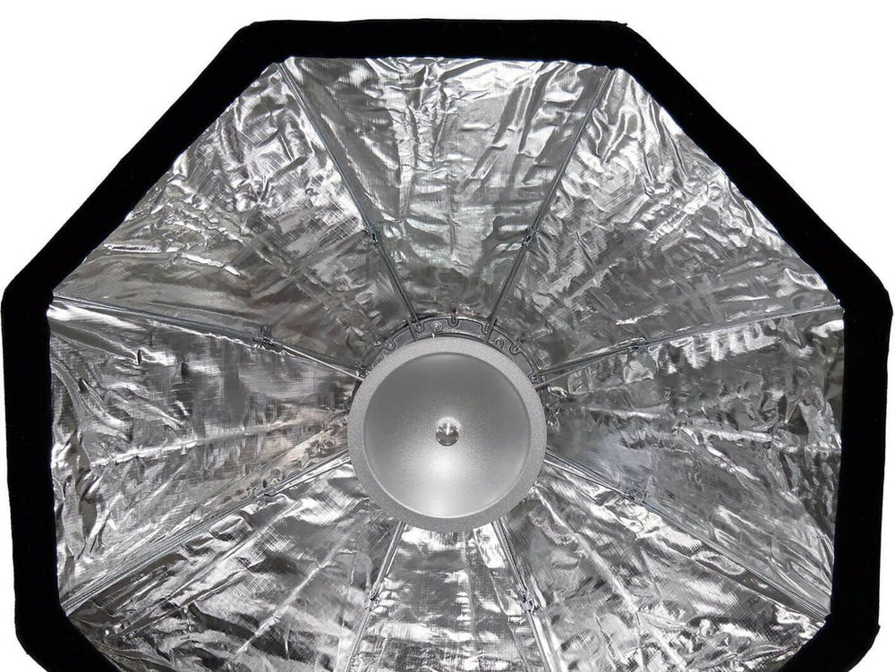 The softbox comes in an octagonal shape, designed for even distribution of your flash's light. The interior is silver-coated to boost the strength of the flash, while the white diffusion cloth ensures the light cast on the subject is soft, eliminating any harsh shadows for a professional finish.