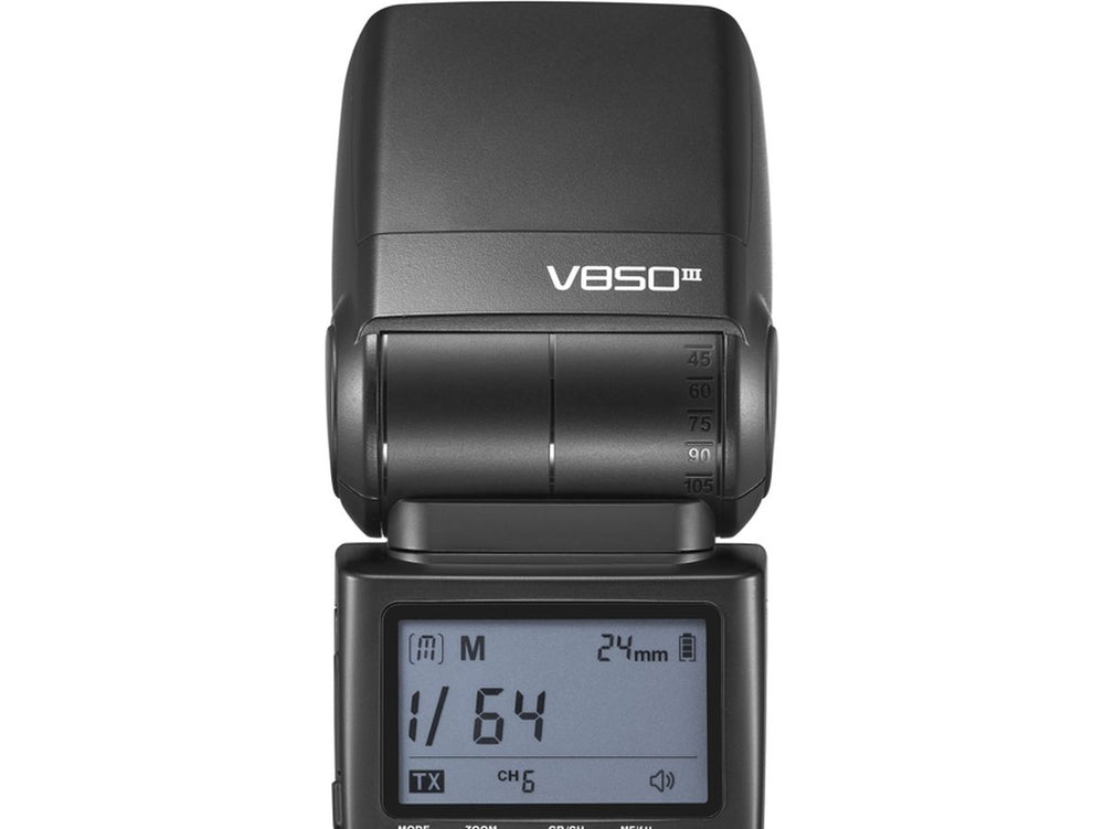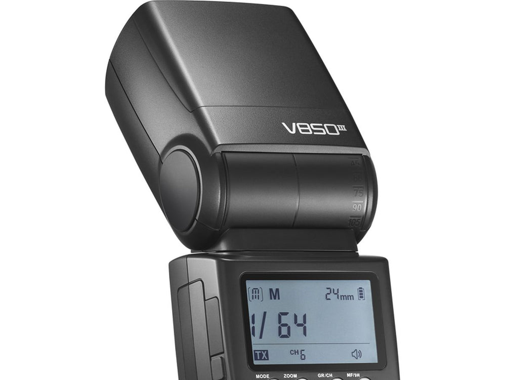 Further enhancing its functionality, the Godox Speedlite V850lll is equipped with a 2.4GHz X wireless transmission system, providing both master and slave capabilities. There is also an option to tilt the flash head from -7 to 120 degrees. This flexibility makes it easier to reflect light even when the flash is mounted above the camera. Furthermore, the flash head can rotate up to 330 degrees to adequately highlight your subject.