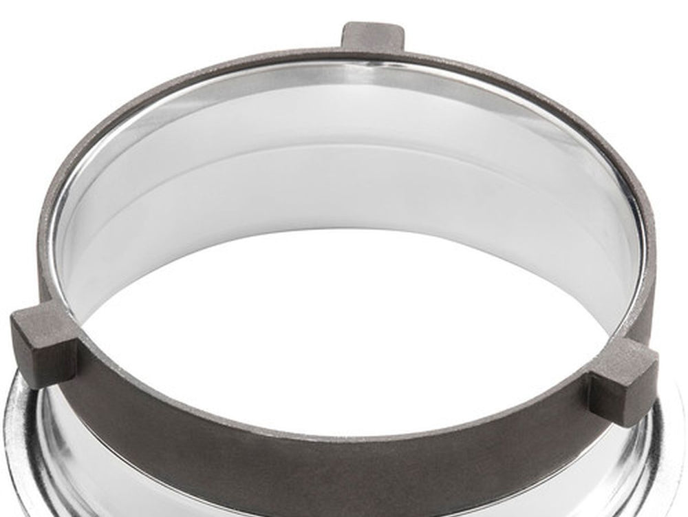 The Westcott Switch Insert (Bowens) is a metallic connector specially crafted for the Westcott Beauty Dish or Rapid Box Switch. Its design simplifies the process of attaching lights and flash devices equipped with a universal Bowens mount. This mount can be installed in a snap by sliding it over the Beauty Dish's back and clicking it securely into place.
