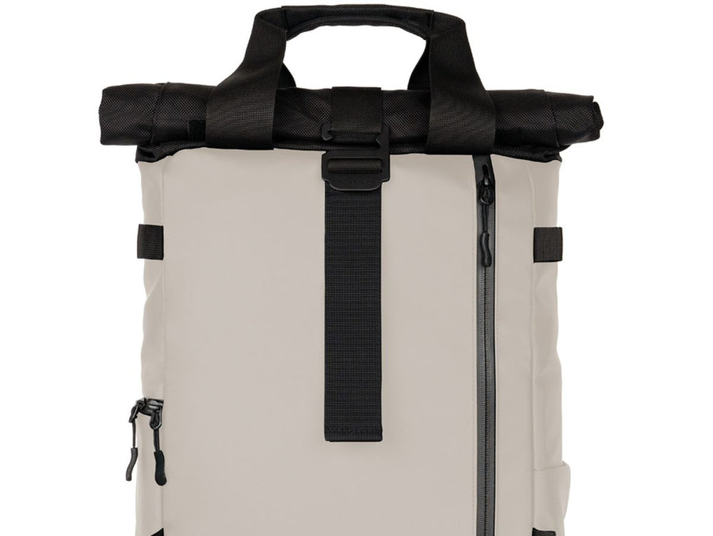 The stylish and intuitive WANDRD PRVKE 11-Liter Tan, featuring an 11-liter capacity and roller top for an additional 5-liter capacity, is ideal for adventurous photographers. Crafted from a waterproof tarpaulin and thick nylon, the bag boasts several handy features including magnetic handles for easy carrying, and expandable side pockets to keep your tripod or drink bottle. Inside, a series of dividers helps organize your gear which can be quickly accessed through a side pocket without removing the backpack. A sleeve for a laptop or a tablet up to 16 inches is also included.