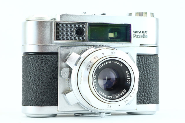 The Braun Paxette, paired with the Braun Paxette 50mm f/2.8 lens, is a vintage 35mm manual focus SLR camerafrom the 1950s to 1960s. Known for its solid construction, classic design, and ease of use, the Paxette system offers great results for film photography enthusiasts and collectors. The 50mm f/2.8 lens offers sharpness, good contrast, and smooth bokeh, making it a great choice for everyday photography.