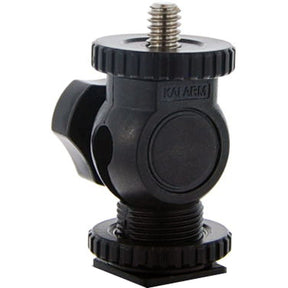 The Falcon Eyes Camera CLD-5MF Tilting Bracket is a vital tool when you're looking to attach various accessories featuring a 1/4" female thread to your camera like an LED light, for example. This Tilting Bracket offers the added benefit of being positioned in an array of angles. It can rotate a complete 360 degrees around its axis and it can tilt 90 degrees both forwards and backwards. Installation onto the camera is stress-free, thanks to the hot shoe connection.