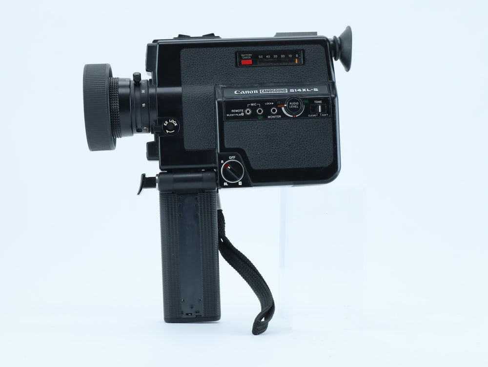 The Canon 514 XL-S is a premium Super 8 camera from the late 1970s, known for its ultra-quiet operation and bright f/1.4 lens. Designed for both amateur and advanced filmmakers, this model features Canon’s silent filming technology and a fast, sharp zoom lens with macro capability. With its ergonomic design and reliable exposure control, it remains a favorite among Super 8 enthusiasts.