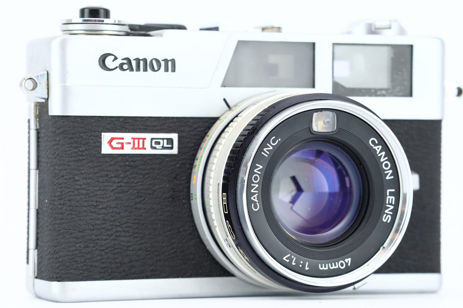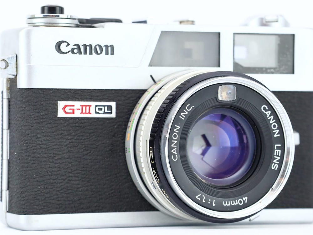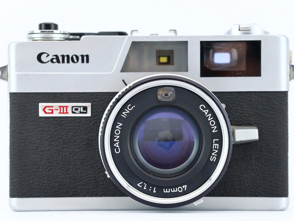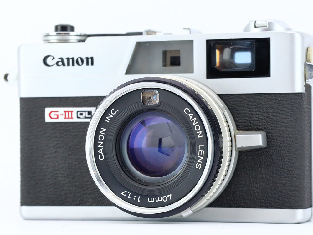 The Canonet QL 17 GIII is the final, high-end version of Canon's famous Canonet compact rangefinder series of the 60s and 70s. It provides shutter-priority auto-exposure and parallax compensation with its 40mm f/1.7 lens.