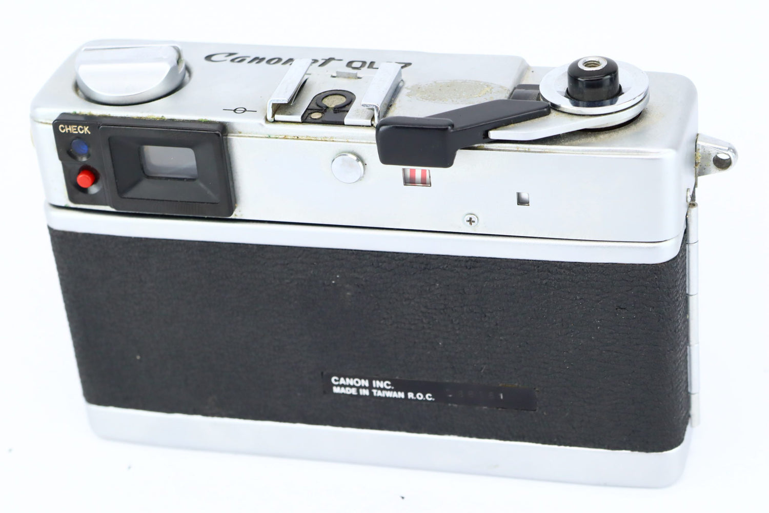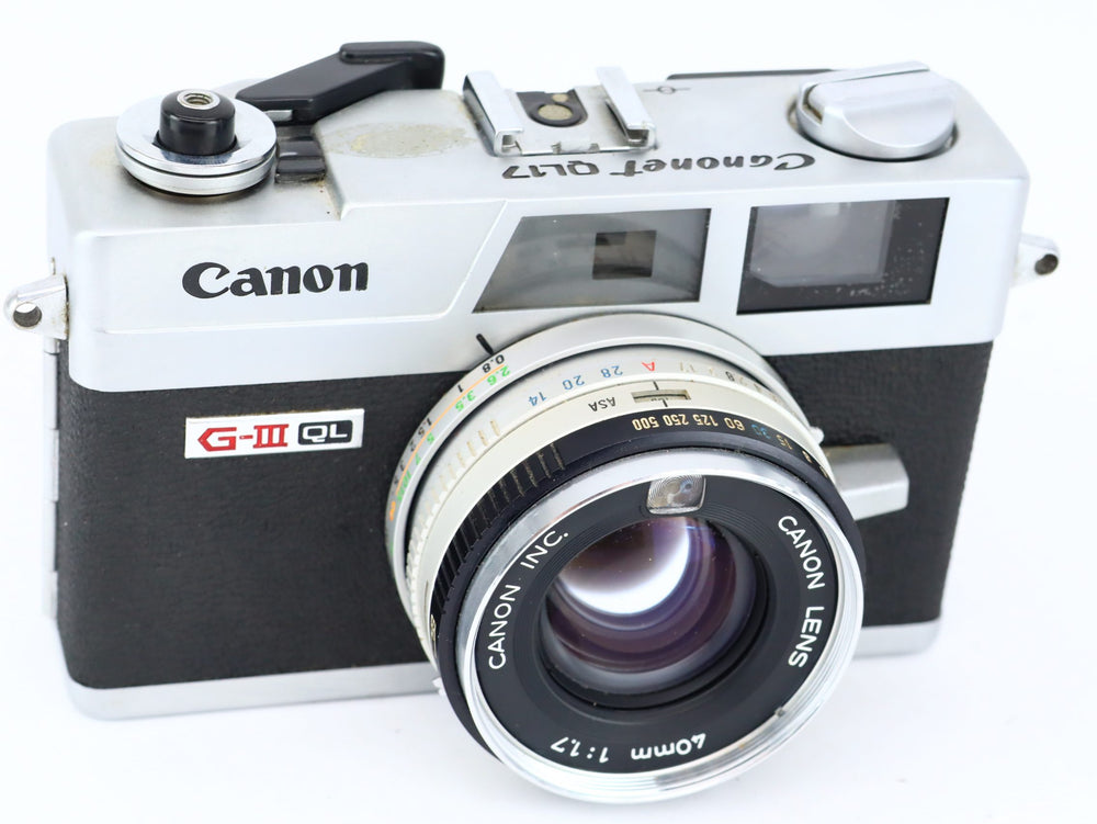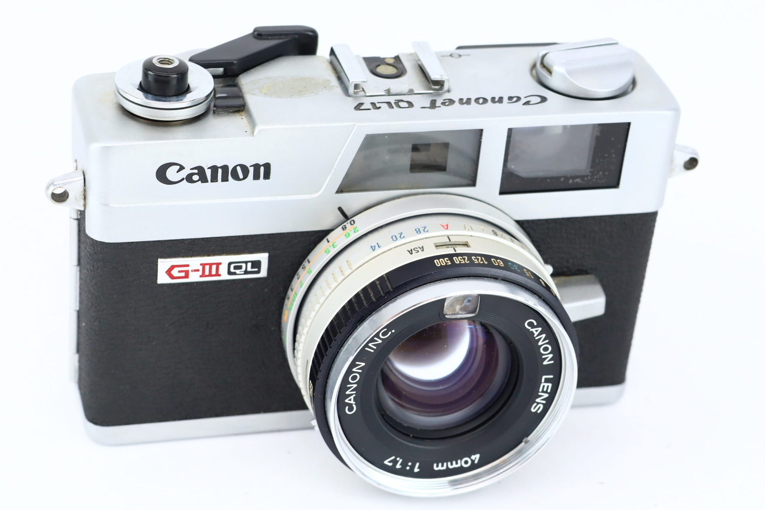The Canonet QL 17 GIII is the final, high-end version of Canon's famous Canonet compact rangefinder series of the 60s and 70s. It provides shutter-priority auto-exposure and parallax compensation with its 40mm f/1.7 lens.
