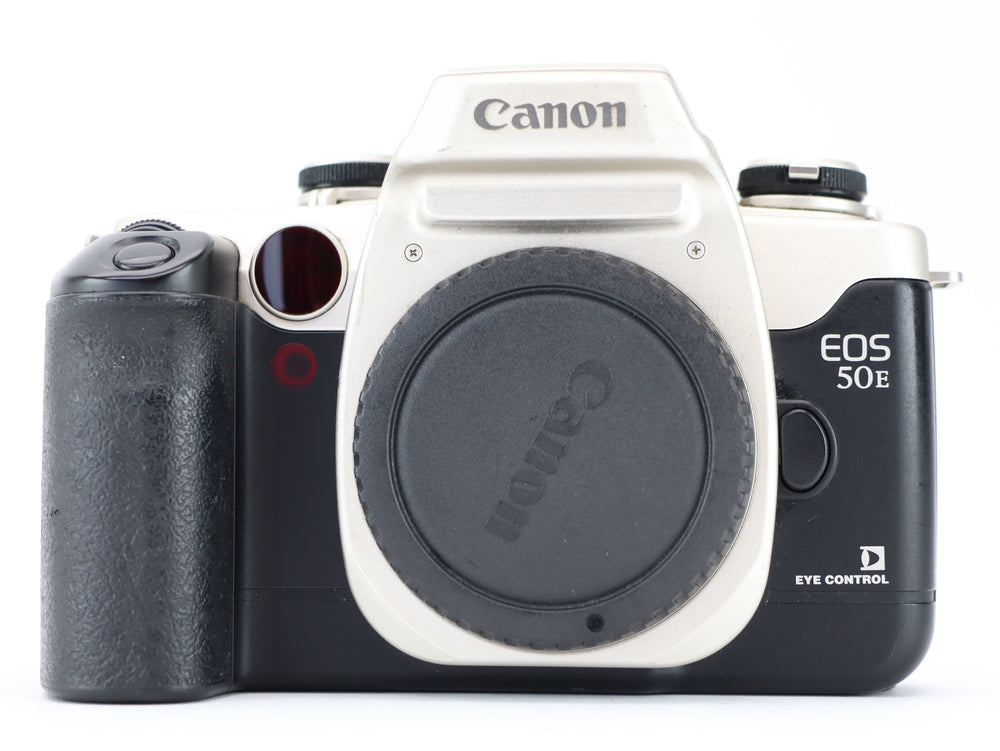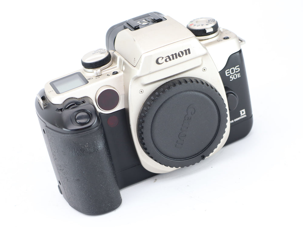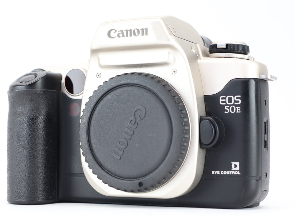 The Canon EOS 50E is a high-performance 35mm SLR film camera designed for both amateur and professional photographers. Known for its advanced features and robust construction, the EOS 50E offers a blend of automatic and manual controls, making it versatile for various shooting situations. This camera is equipped with Eye-Control Focus, which allows photographers to select autofocus points simply by looking at them, enhancing the shooting experience. Compatible with Canon's extensive lineup of EF lenses, the EOS 50E delivers exceptional image quality and creative flexibility.