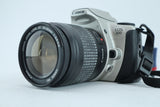 The Canon EOS 300, paired with the EF 28-80mm f/3.5-5.6 zoom lens, is a lightweight and user-friendly 35mm SLR camera, ideal for beginners and enthusiasts looking to explore film photography. Featuring automatic and manual controls, the EOS 300 provides flexibility for a wide range of shooting styles. The included lens offers a versatile zoom range, suitable for landscapes, portraits, and everyday photography. Compact and reliable, this kit delivers excellent image quality while being easy to carry and operate.