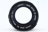 An affordable portrait lens in the Canon FD system. Yet another lens that was re-launched in 1979 as part of the Canon "New" FD change. The lens is a fantastic little portrait/short telephoto for the system. I was able to acquire mine for an absolute steal from the Seattle Goodwill eBay store.