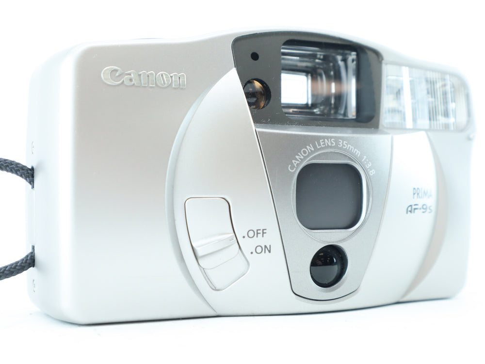 The Canon Prima AF-9S (also known as the Canon Sure Shot AF-9S in some regions) is a lightweight and easy-to-use 35mm point-and-shoot camera, perfect for casual photographers and film enthusiasts looking for reliable autofocus, a sharp lens, and a built-in flash. The 35mm f/3.8 lens delivers clear, well-exposed images, making it ideal for travel, street photography, and everyday snapshots.