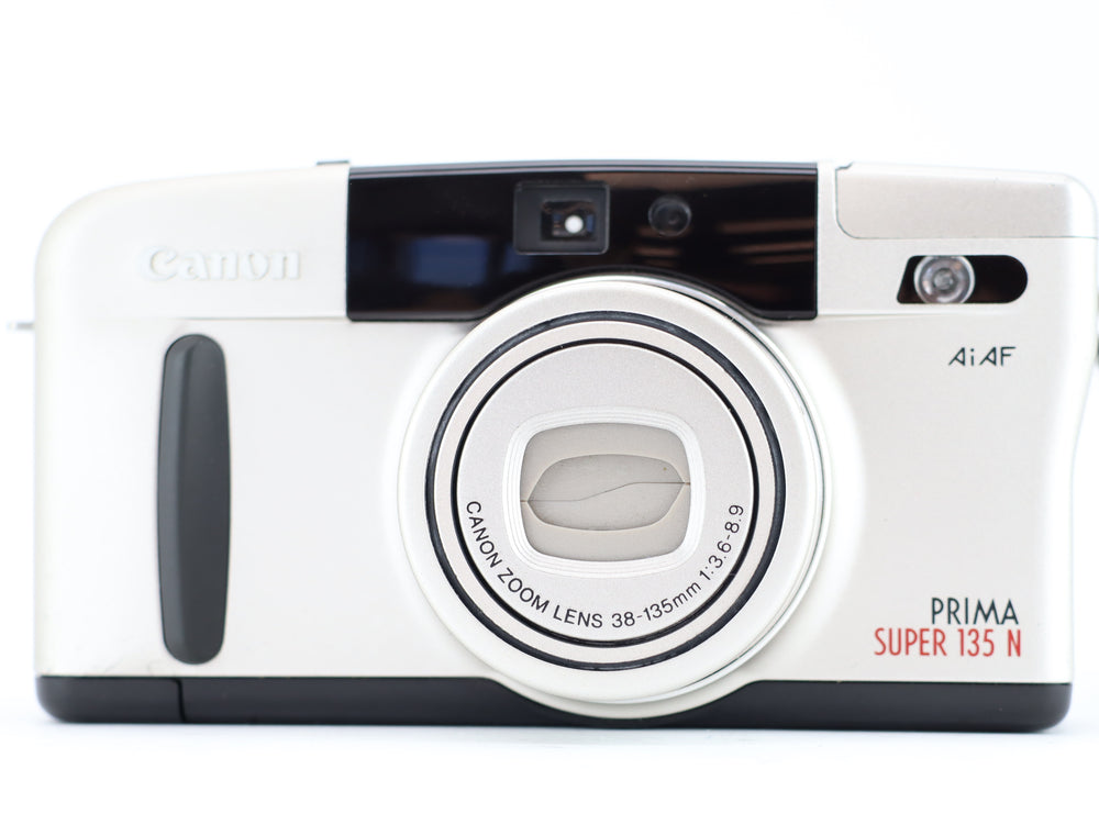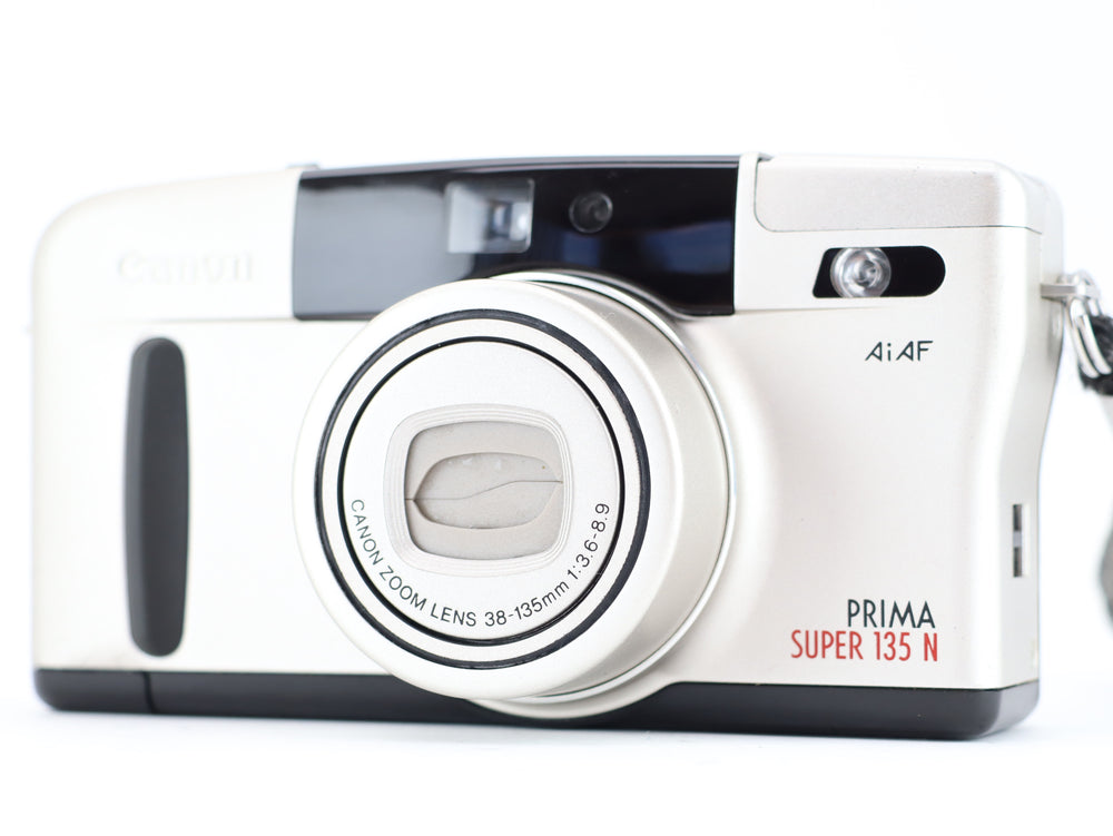 The Canon Prima Super 135 N is a versatile and compact 35mm film camera designed for everyday photography. Featuring a powerful 38-135mm zoom lens, this camera offers a wide range of focal lengths, making it perfect for capturing landscapes, portraits, and everything in between. Its user-friendly interface and automatic features make it ideal for both beginners and casual photographers.