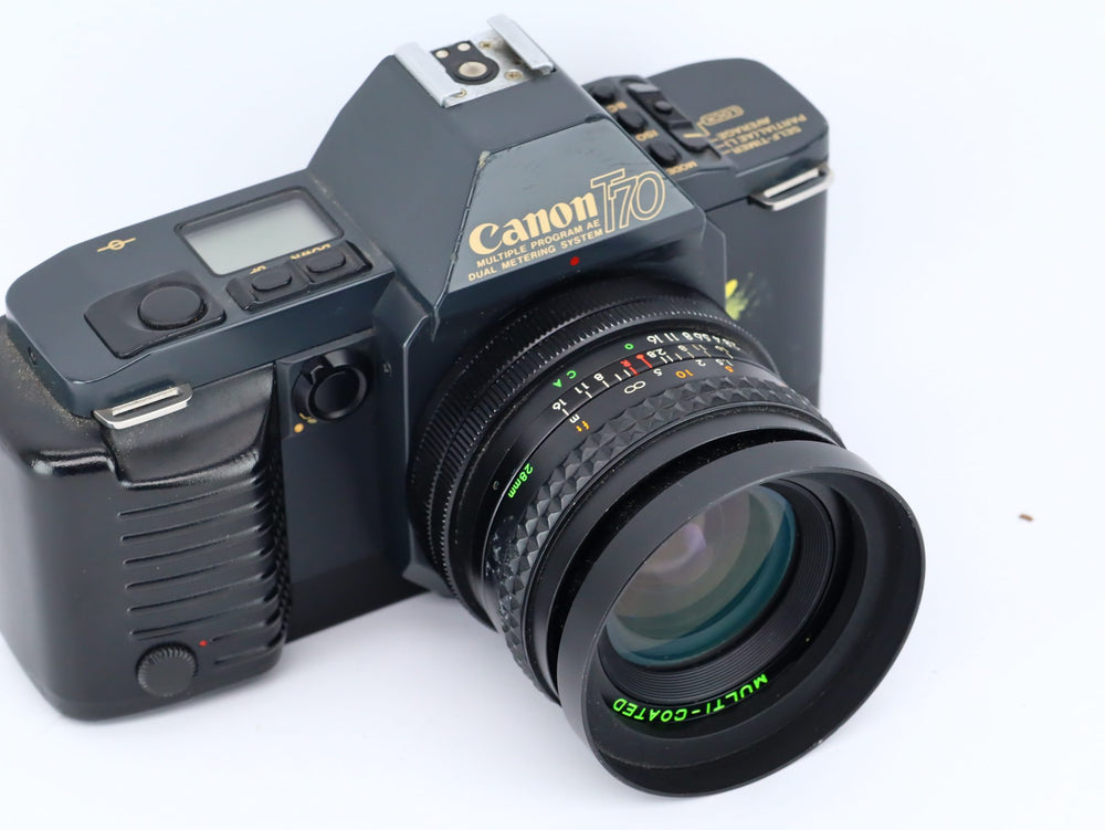 Excellent Canon T70 + 28mm 2.8 SLR camera. Tested and working only some sign of use on the camera. The camera is in good condition.