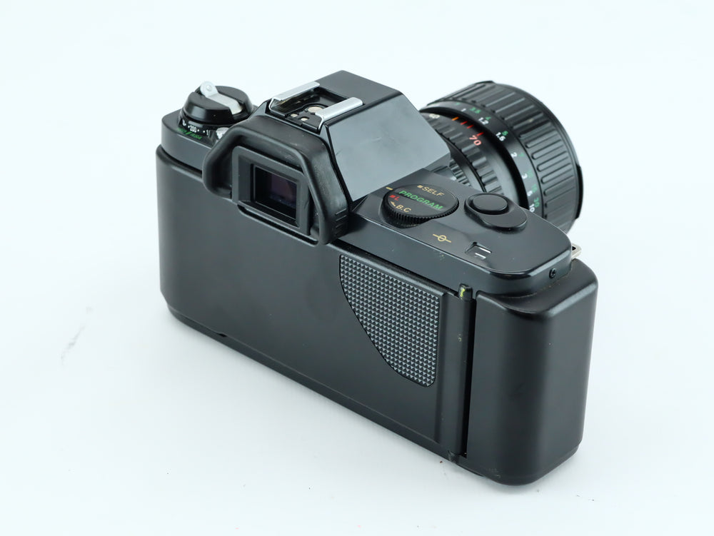 The Canon T70 paired with the Canon Zoom Lens FD 35-70mm f/3.5-4.5 is a versatile and reliable combination that offers exceptional imaging capabilities and creative flexibility for photographers. Whether you're capturing landscapes, portraits, or everyday moments, this duo provides the features and performance you need to achieve stunning results.