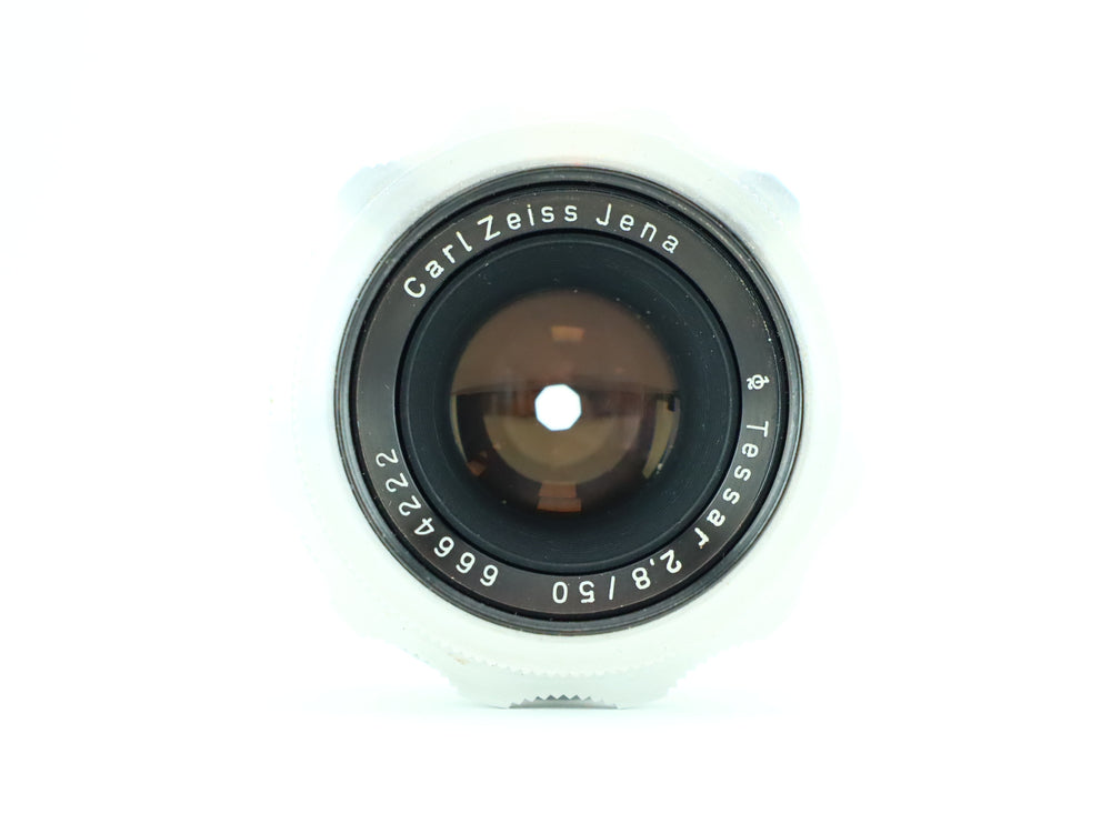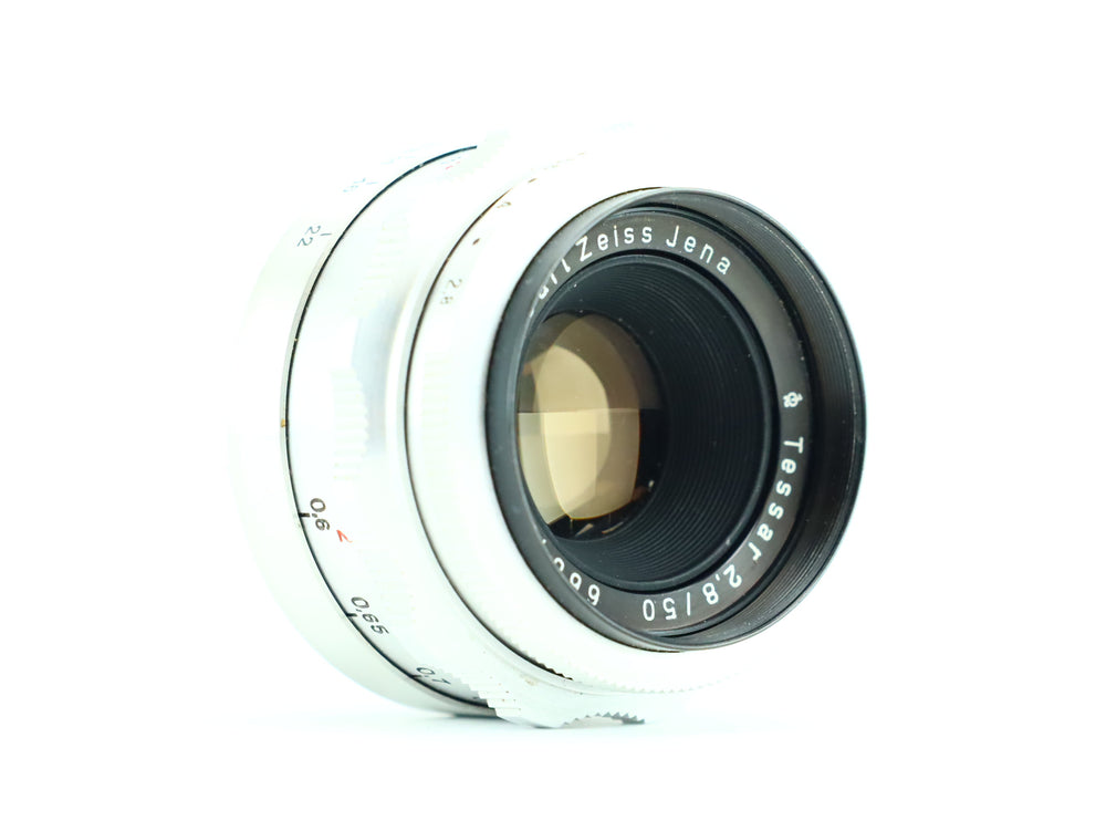 The Carl Zeiss Jena Tessar 50mm f/2.8 is a legendary lens known for its sharpness, contrast, and reliable optical performance. Often referred to as the "Eagle Eye" for its precision, this classic 50mm lens is ideal for a wide range of photography, from portraits to landscapes. Its compact design and fast f/2.8 aperture make it an excellent choice for photographers seeking both quality and portability. The Tessar design, featuring four elements in three groups, delivers superb image clarity and minimal distortion.