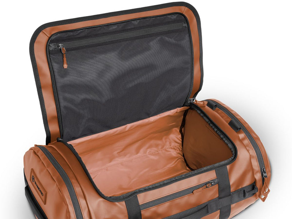 Let's talk about an incredibly versatile bag, the WANDRD CARRYALL Duffel 40L, coated in magnificent Sedona Orange. This bag thrives throughout a wide range of adventures as an exceptional hybrid of a backpack and duffel. Boasting superior durability and weather resistance, it is your ideal companion for a day out snowboarding, or a refreshing weekend getaway.