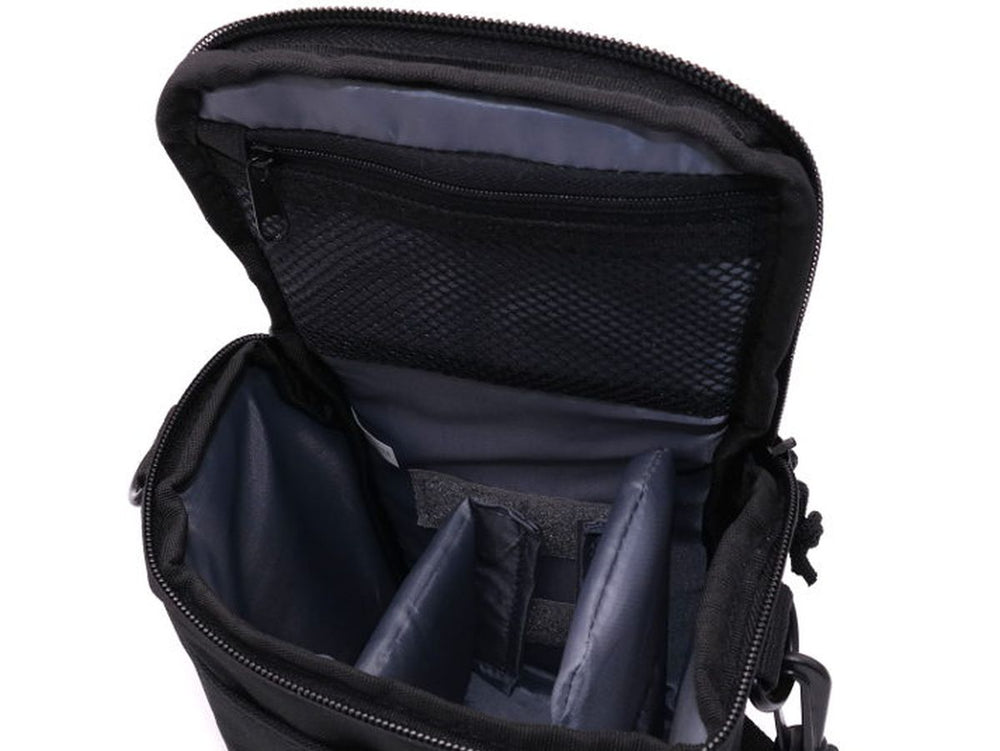 This practical bag provides space for not only your camera but also small accessories like memory cards and spare batteries, which can conveniently be stored in the zippered compartment located inside the flap of the bag. The rear of the bag also provides a quick access pocket for safekeeping your lens cap.