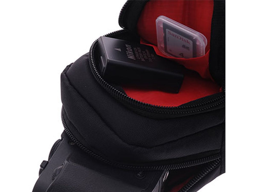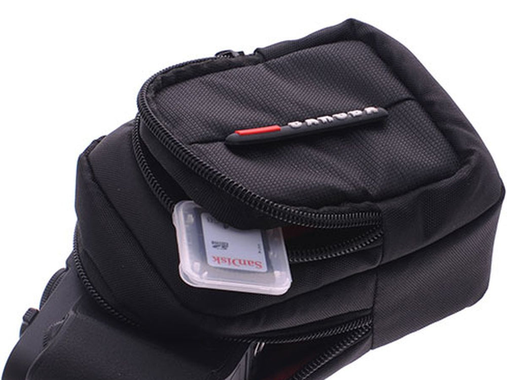 You have the option to either use the delivered shoulder strap or attach it from the back loop of the bag. Additionally, the case features a small front pocket—a perfect spot for storing a memory card or any other small-sized item that you might need on your photography escapades.