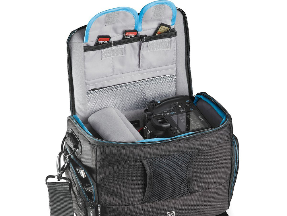 The black-colored Cullmann Sydney Pro Maxima 120 bag is a specially designed accessory that complements the trending CSC cameras perfectly. This bag amazes with its robust exterior materials, metallic fittings, and a fresh design. Its color scheme is subtly maintained with blue accents that help in easy identification. With the Sydney pro bags, Cullmann has successfully married modern design with high quality standards.