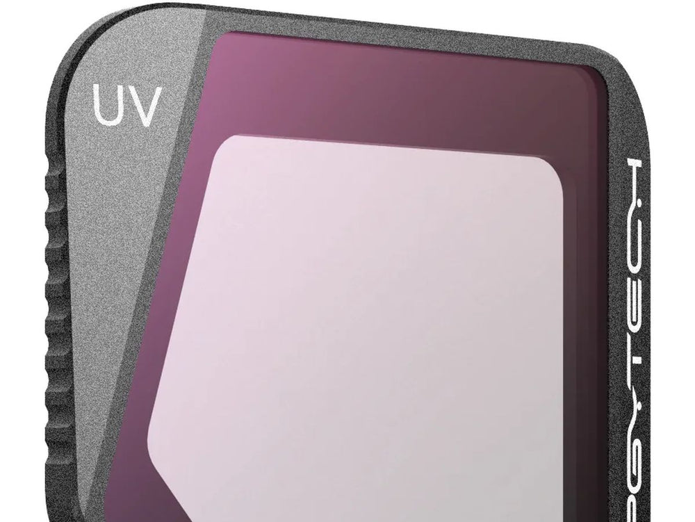 The PGYTECH UV filter is specifically designed for the DJI Mavic 3 Classic drone, offering crisp, clear footage even under the brightest sunlight conditions. Its main function is to reduce green-blue haze that can often occur when filming in sunny conditions. Additionally, it serves to provide added lens protection for the front of the drone.