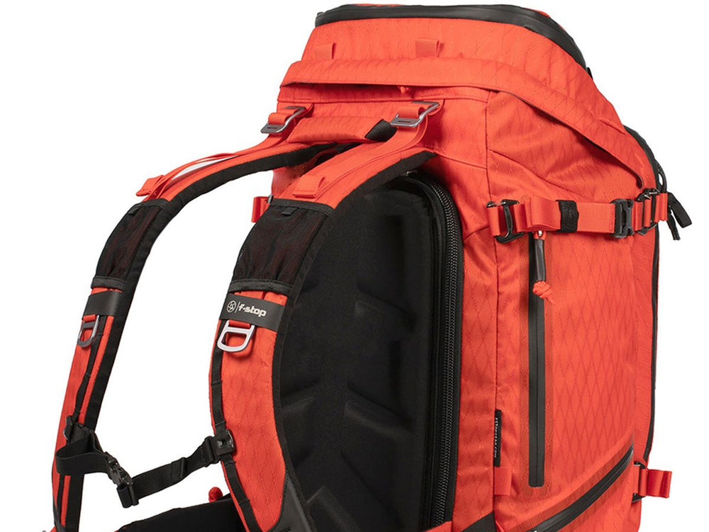 The newly engineered bag is crafted using an exclusive and patented DuraDiamond fabric. This material outstrips the previous F-Stop bags’ fabric in lightness, weather resistance, and durability. Further reinforcing the bag are the critical carrying points and attachment points, bolstered by a blend of T6 aluminium and plastic hardware. All of this with DuraDiamond material, welded on essential points, and weather-resistant zippers, assures superior protection against the elements. An aluminium frame enhances the carrying comfort, as it effectively shifts the bulk of the weight towards the hips, allowing an easy all-day carry. The bag also features and an adjustable, clip-in chest strap for a stable, comfortable fit and foam-infused shoulder straps and waist belt for pressure-free and comfortable wearing.