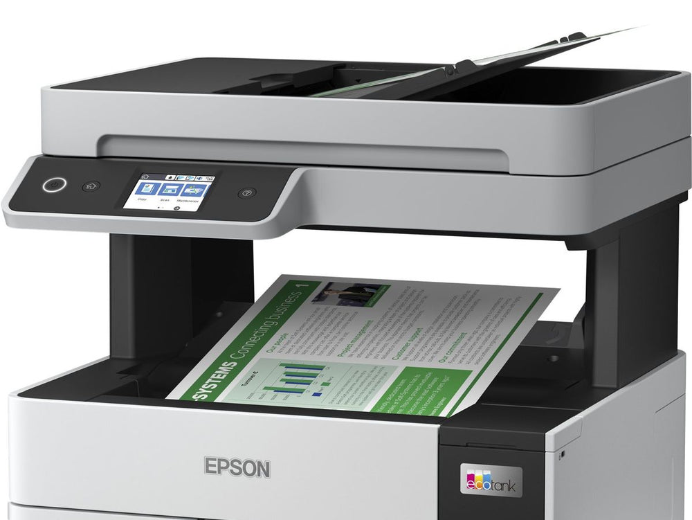 The printer facilitates effortless printing of documents sent via Wi-Fi and Wi-Fi Direct, thanks to the Epson iPrint and Smart Panel applications.