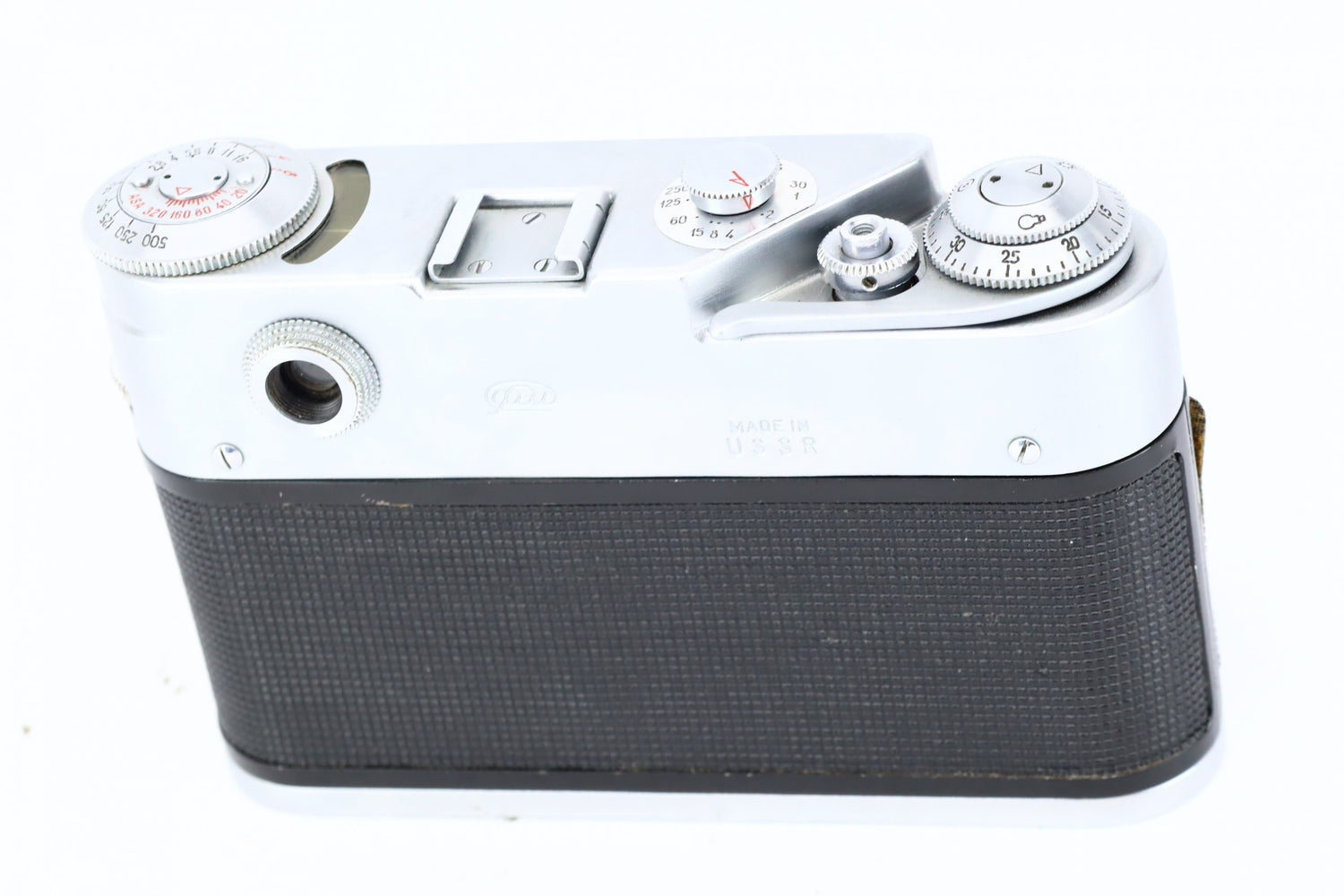 The FED 4 rangefinder camera was produced by the FED factory in Kharkov, Ukraine from 1964 to 1980. It has interchangeable lenses, fitted with a Leica-type M39 screw thread. The normal standard lens supplied was a 53mm f2.8 Industar 61. It has a focal-plane shutter, with speeds from 1s - 1/500s +B, with flash sync at 1/30s and a self-timer. The frame size is 24x36mm on 35mm film.