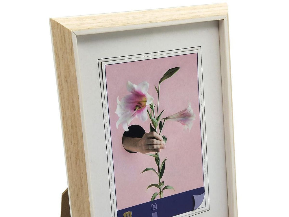 The Henzo Lily Picture Frame in the 13x18 cm size is crafted from plastic and features a beautiful design that mimics natural wood. This frame is fitted with high-quality glass that has been polished and cleaned to ensure that your cherished photos are displayed clearly and safely. Included is a mat board sized at 9x13 cm, which can be utilized for a smaller photo, while without the mat, the frame can accommodate a full-size image of 13x18 cm. Versatility is key with the Henzo Lily frame, as it can be hung both horizontally and vertically to suit your space.