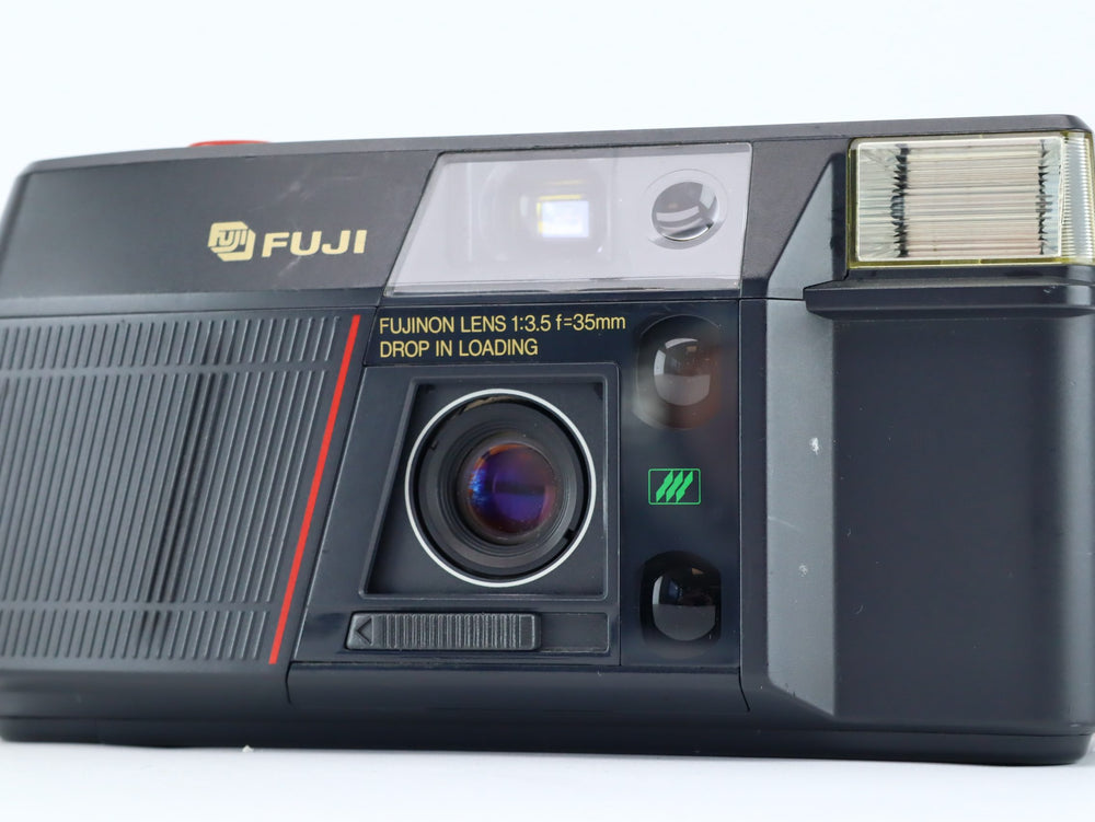 Fujica Auto-7 is an early autofocus compact camera released in 1981, a year after the zone focus Auto-5. As the name implies, it is fully automatic, with autofocus, autowinder, auto-loading, auto-return, auto-exposure and automatic setting of film speed.
