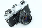 This Fujica ST605 is an SLR camera in good condition, with a 55 2.2 lens that is still in excellent condition. Clean and user-friendly, this camera is perfect for those looking to capture beautiful photos and videos.