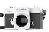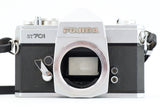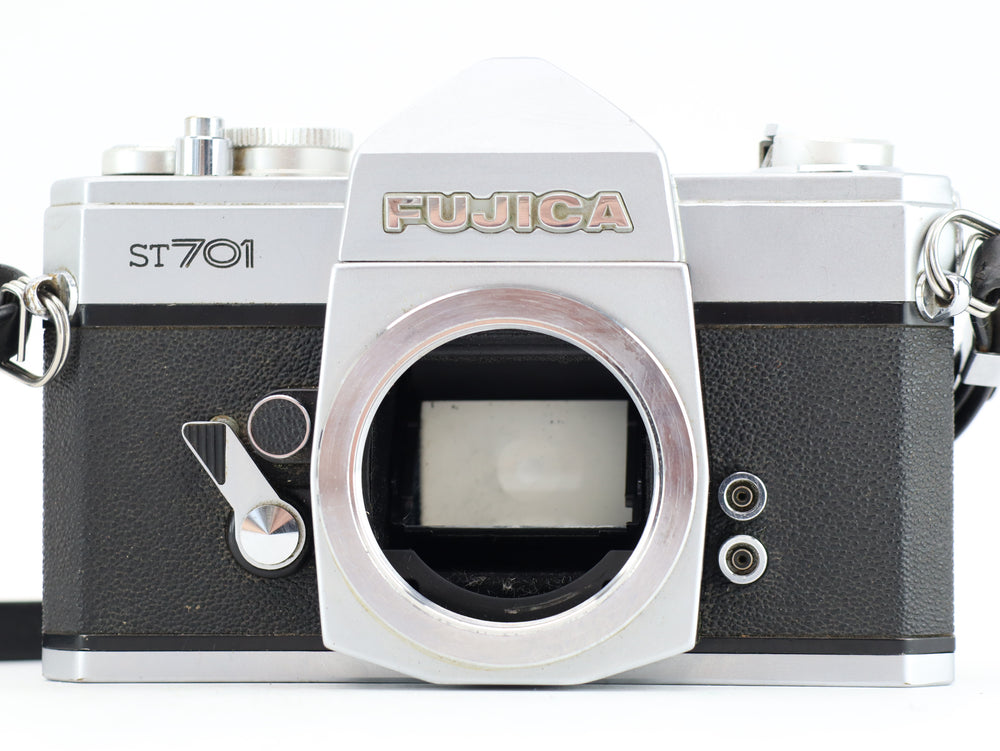 The Fujica ST701 is a classic 35mm film SLR camera known for its robust build, precision, and ease of use. Manufactured by Fujifilm, this camera features a reliable mechanical shutter system and a comprehensive set of controls that cater to both beginners and advanced photographers. Its dependable performance and compatibility with Fujica's range of M42 screw-mount lenses make it a versatile choice for film enthusiasts.