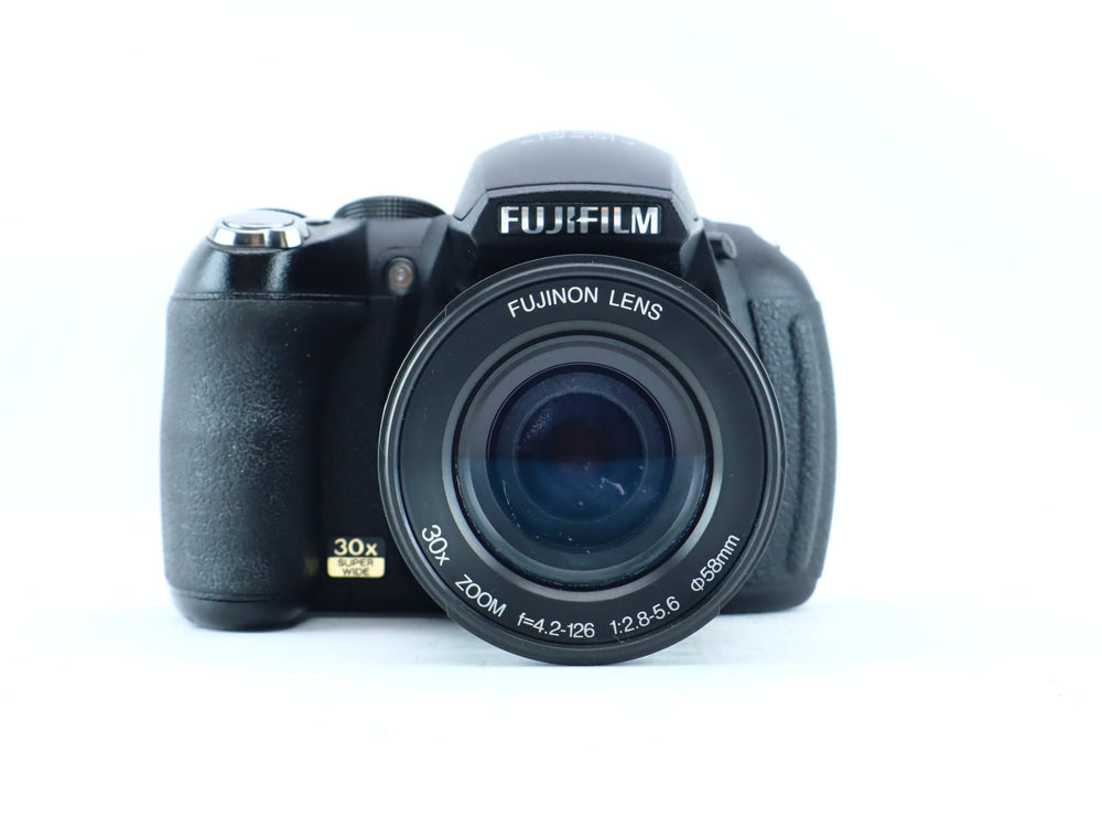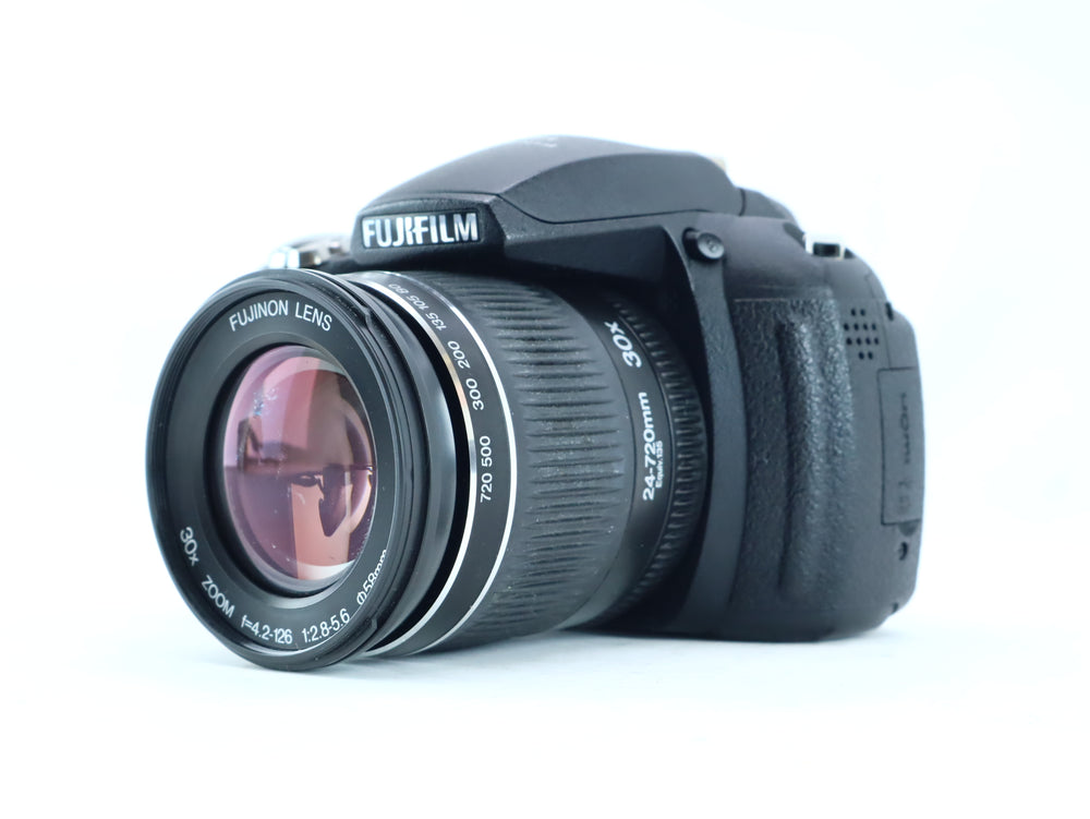 The Fujifilm FinePix HS10 is a versatile digital bridge camera with a powerful Fujinon 4.2–126mm f/2.8–5.6 superzoom lens (24–720mm equivalent).