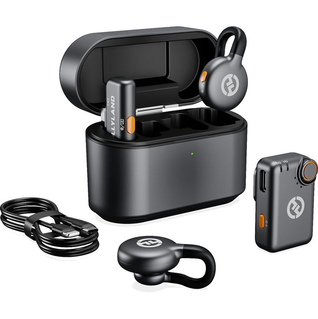 The Hollyland LARK M2S Combo is the perfect solution for capturing audio from up to two speakers in mobile journalism and content creation. This innovative system features two ultra-compact transmitters equipped with built-in omnidirectional microphones, allowing for discreet recordings. It includes a USB-C receiver for easy connection to mobile devices, a camera-mount receiver, a USB-C to Lightning adapter cable, and a convenient charging case.