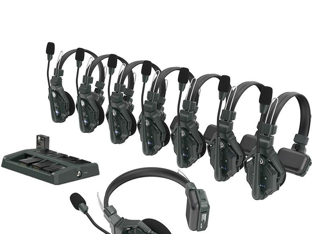 • One master headset with seven follower headsets