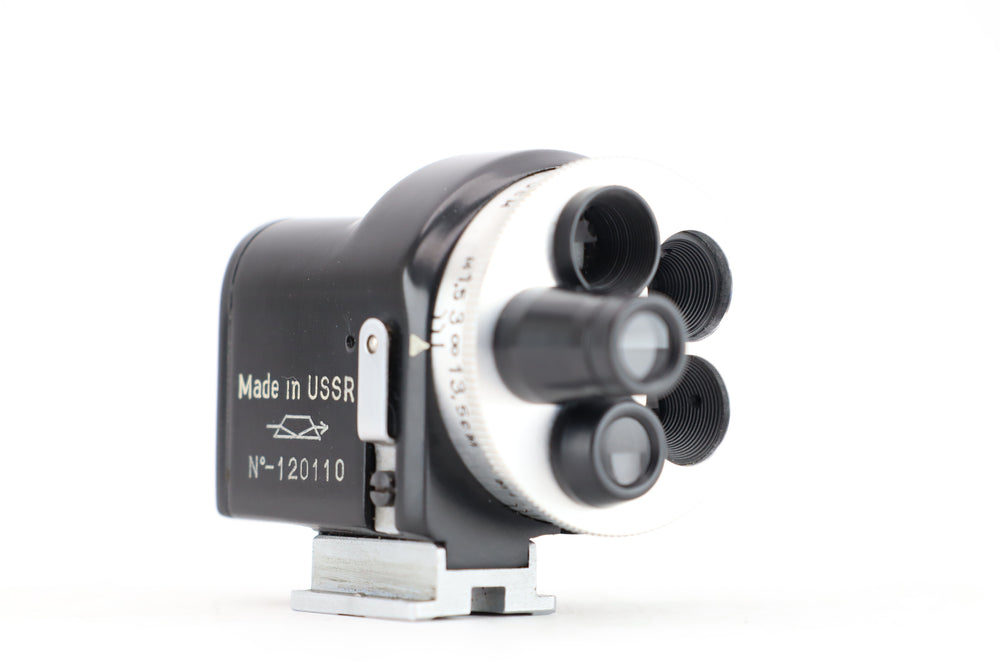 The KMZ Turret Viewfinder is a versatile and high-quality accessory designed for use with rangefinder cameras. Manufactured by the renowned KMZ (Krasnogorsky Mechanichesky Zavod) in the Soviet Union, this viewfinder allows photographers to accurately frame and compose images when using lenses of different focal lengths. It features a turret mechanism with multiple viewfinder lenses that can be easily switched, making it an essential tool for rangefinder camera enthusiasts.