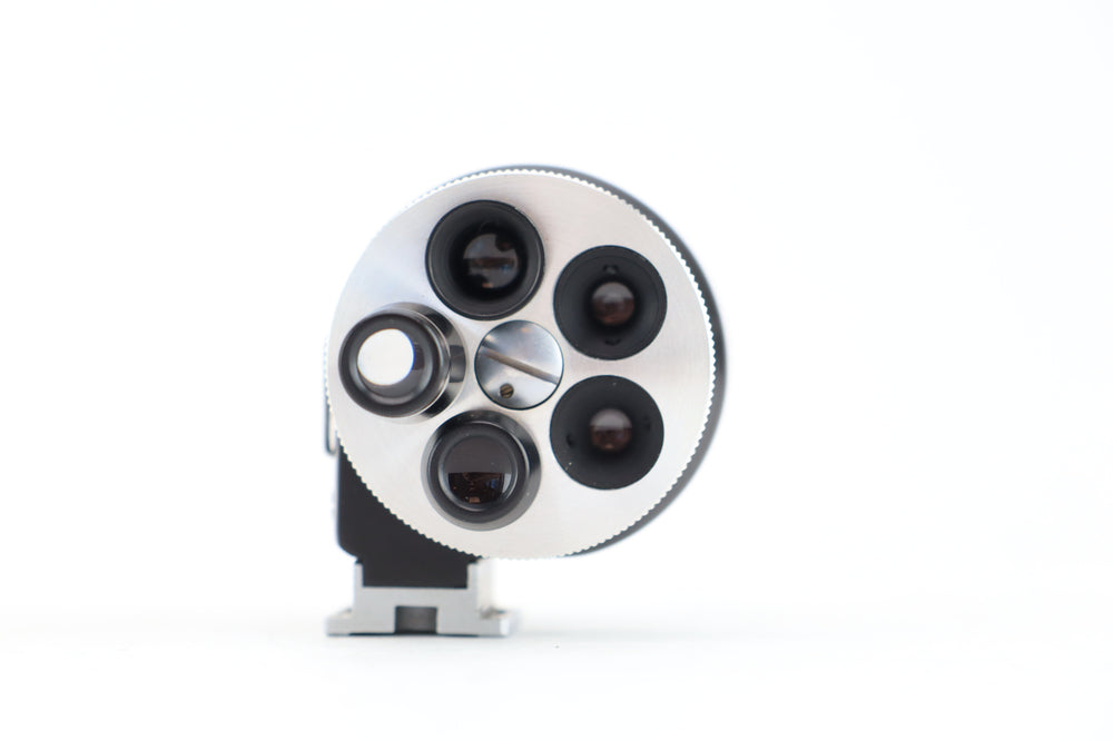 The KMZ Turret Viewfinder is an invaluable accessory for photographers using rangefinder cameras, particularly those who frequently switch between lenses of different focal lengths. This viewfinder simplifies the process of composing shots by offering multiple focal length options in one compact unit.