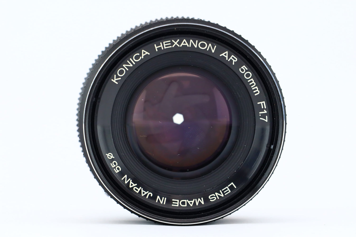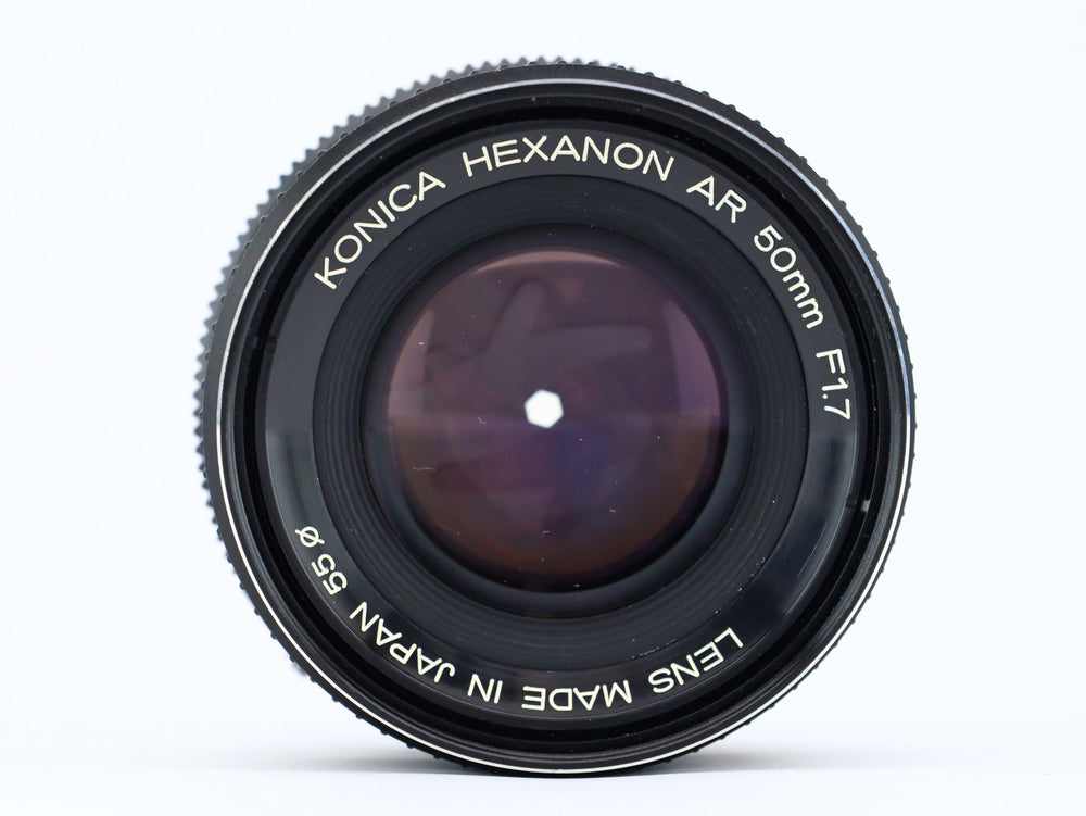 The Hexanon 50mm F1.7 lens was introduced with the Konica Auto refex T3 as a standard lens. It was the new designed standard lens after the AR 52mm F.8 lens. This lens has the green mark for automatic exposure position AE. So it’s the second version. With the standard lens Konica had a great success , its much sharper then its predecessor it was praised as on of the sharpest lenses from this period, even now more then 35 years later not many lenses preform is this lens.