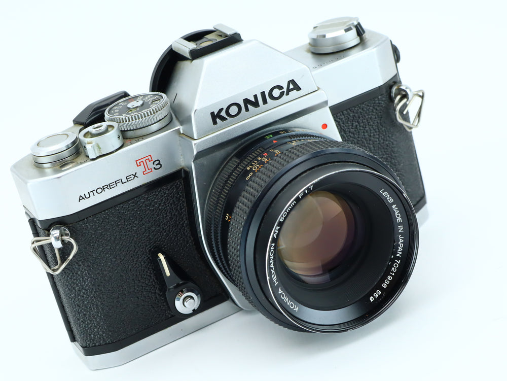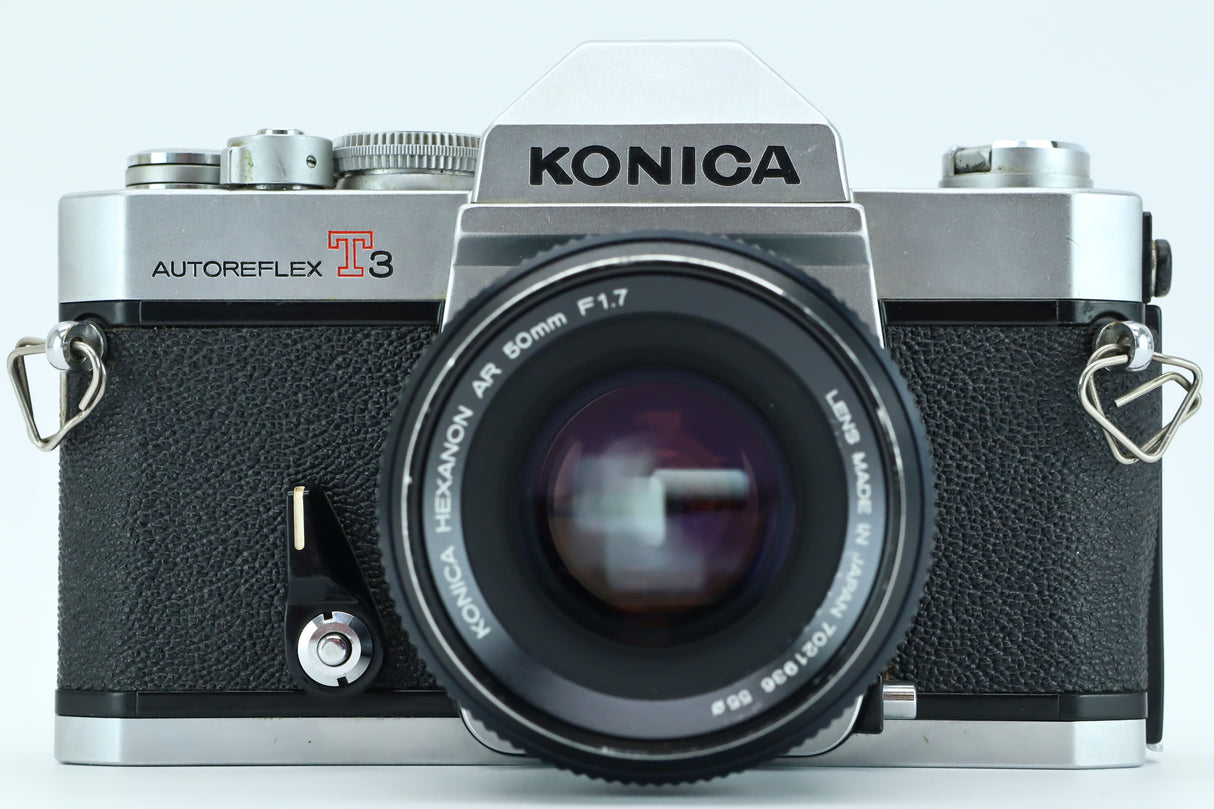 The Konica T3 + AR 50mm 1,7 is a high-quality camera with a fast 50mm lens. Capture stunning images with precision and clarity. This camera is perfect for photographers looking for professional results.