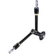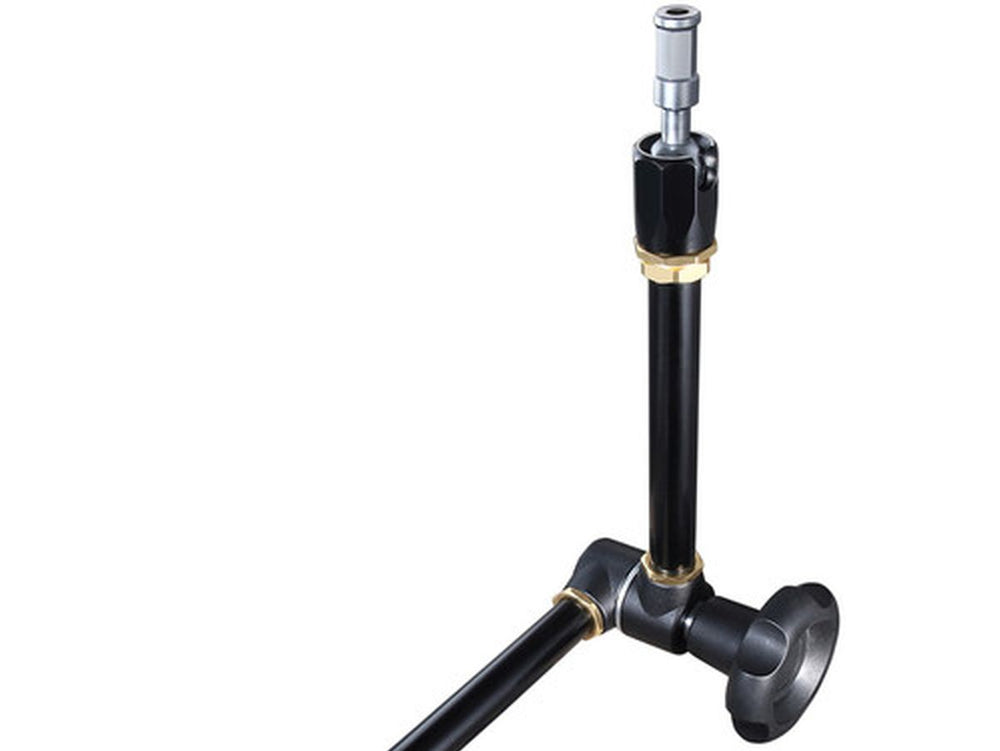 It accommodates a range of connection types with one ball head having a 16mm spigot containing a 1/4" screw thread fitting, while the other features a 16mm spigot equipped with a 3/8" thread. A conveniently designed 90-degree notch allows for an effortless switch between horizontal and vertical positions. Adjusting and locking the Magic Arm is a breeze, thanks to its large rotating knob.