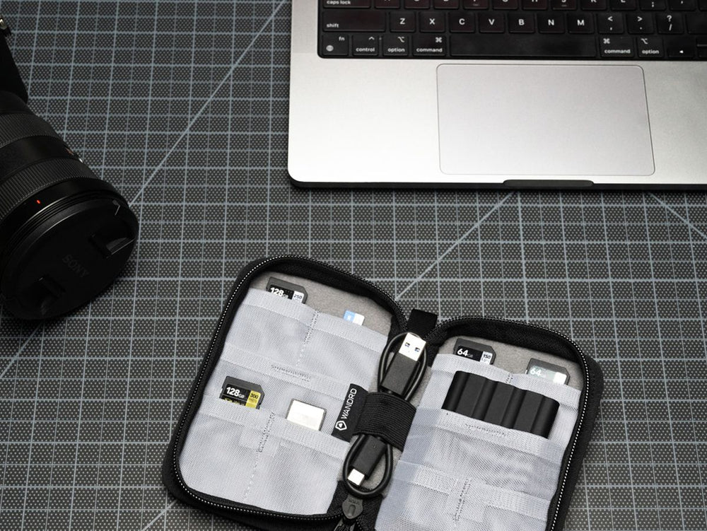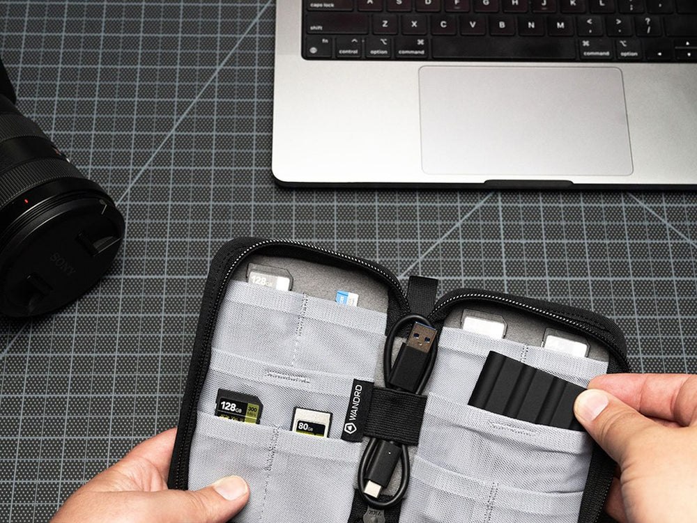 The WANDRD Black Memory Card Case is a fantastic choice for ensuring the secure storage and protection of your digital data devices. It offers 8 slots for SD cards, 2 SSD storage compartments, and an elastic cord holder. This allows you to centralize all your essential storage devices, making them easily accessible yet secure.