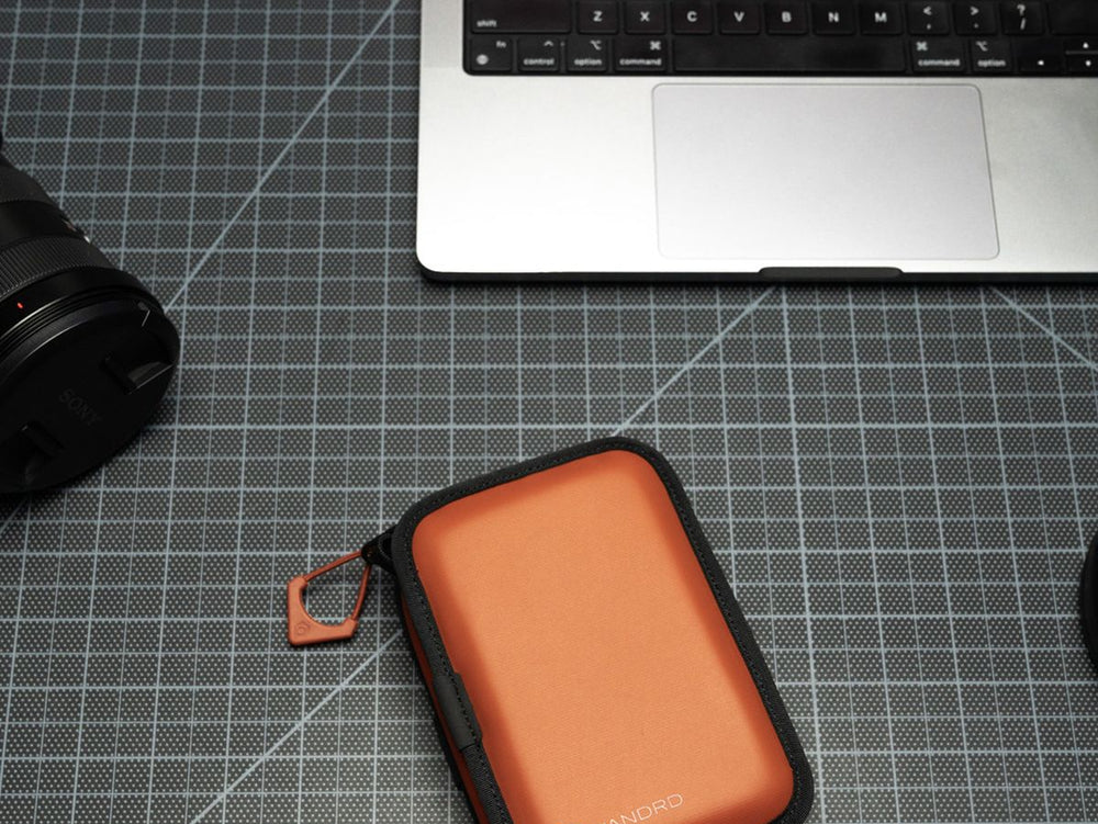 The WANDRD Memory Card Case coloured in bold Sedona Orange provides a perfect solution to secure and protect your valuable digital storage items. It features 8 SD card slots, 2 SSD compartments, and a flexible cable holder, letting you collect your necessary items into one organized, readily accessible spot.