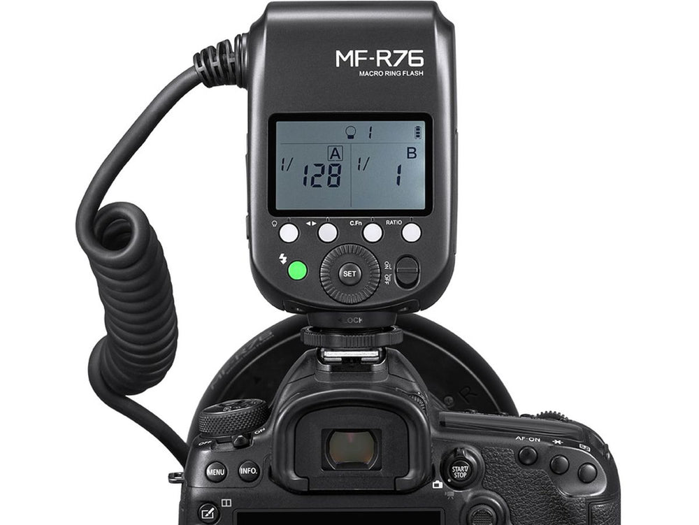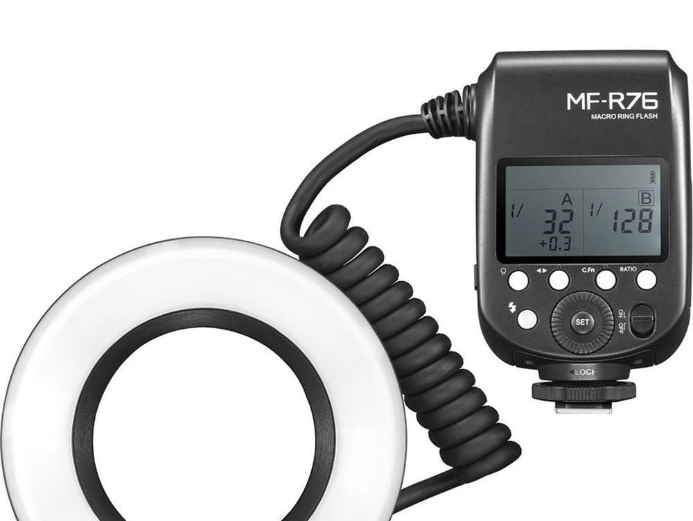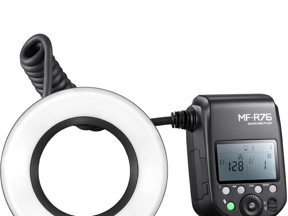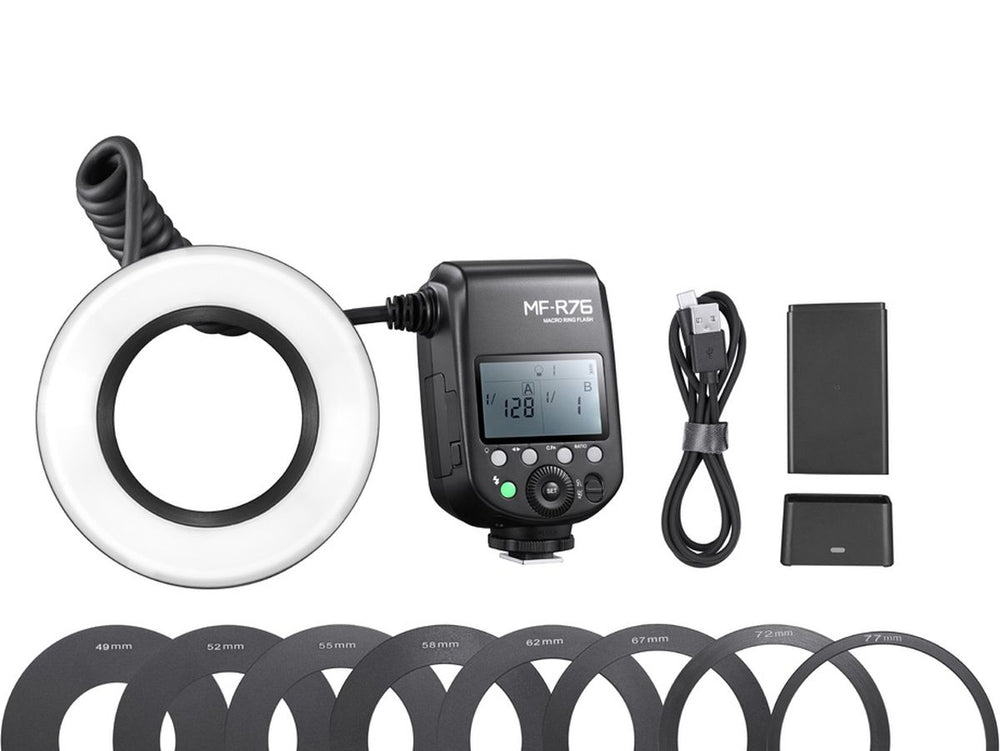 The Godox MF-R76 is a specialized macro ring flash designed to enhance your photography experience. Its circular shape allows for direct attachment to the front of your camera lens, creating an effective lighting source for capturing intricate details in your subjects.