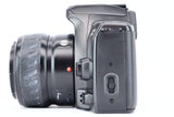 The electronically controlled vertical travelling focal-plane shutter has speed of 30s to 1/2000 of a sec. with a flash sync of 1/90. The program exposure mode contains 5 separate modes including portrait, landscape, close-up, sport and night portrait. The metering is TTL based on a silicon photo cell with a range of 4 to 20 EV. It can use DX encoded films with speeds of 25 to 5000 ISO. Non-DX films will use the previous films ISO setting. A electronic self-timer mode is available with a delay of 10 seconds.
