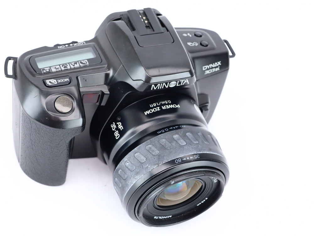 Excelent Minolta Dynax 303si 25-80mm 1:45,6 camera. Tested and working only some sign of use on the camera. The mirror is clean.