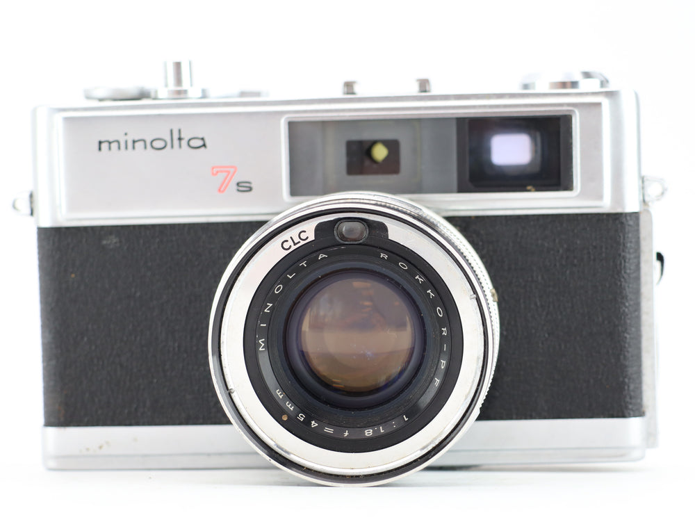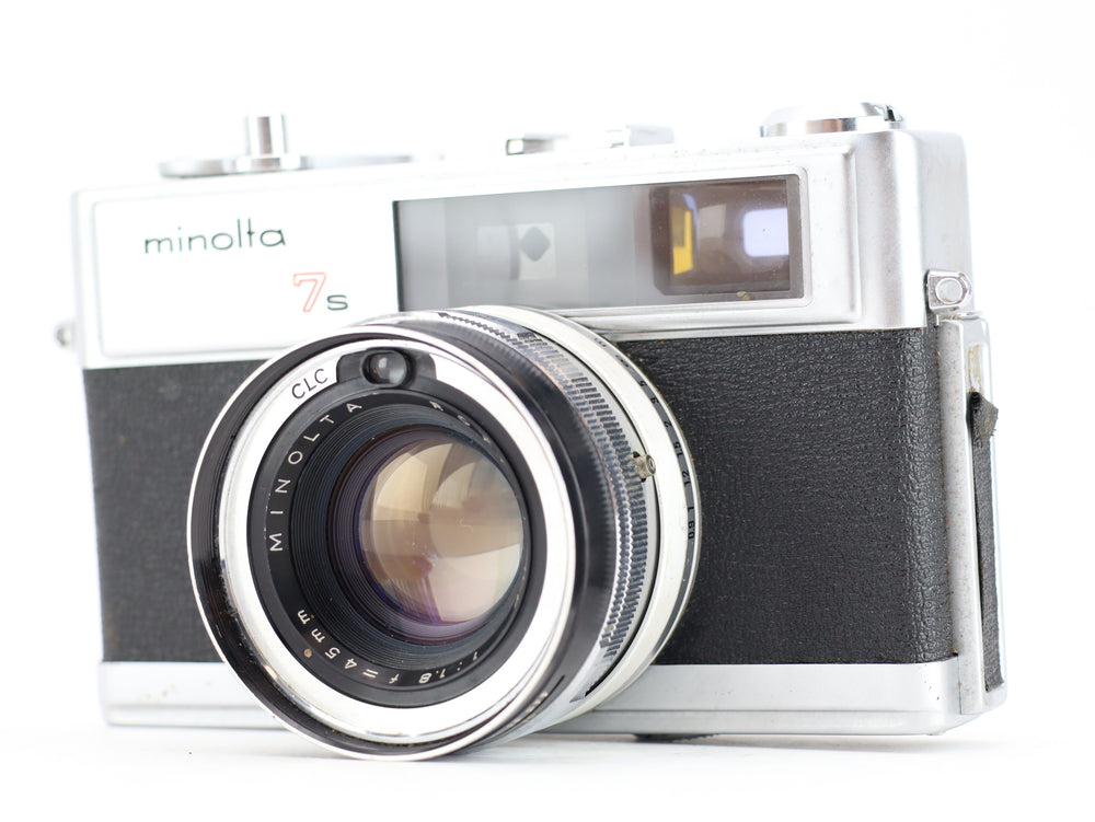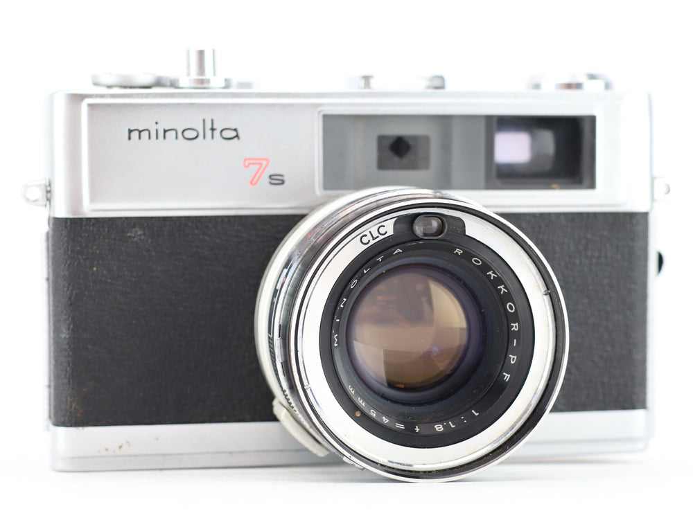 The Minolta HI-MATIC 7s is a classic 35mm rangefinder camera equipped with a fast 45mm f/1.8 lens. Introduced in the 1960s, this camera is known for its excellent build quality, ease of use, and sharp optics. The HI-MATIC 7s is a favorite among film photography enthusiasts for its reliable performance and the beautiful images it produces.