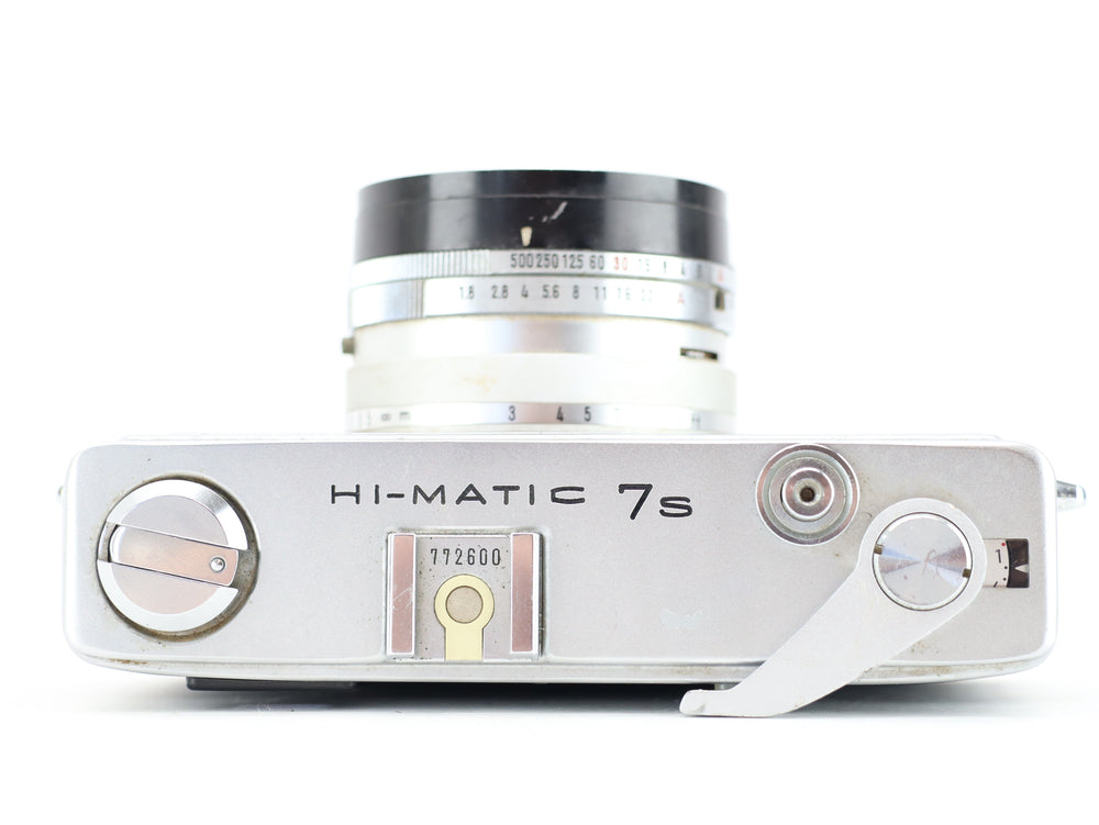 Focusing with the HI-MATIC 7s is straightforward thanks to its bright and clear rangefinder. The coupled rangefinder mechanism ensures precise focusing, and the viewfinder includes frame lines for accurate composition. This makes the camera suitable for a wide range of photographic applications, from street photography to portraits and landscapes.