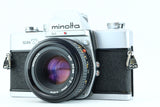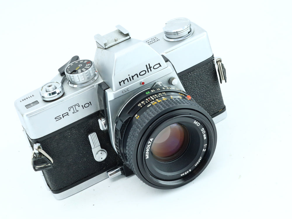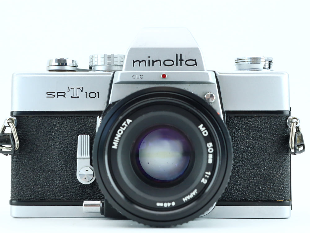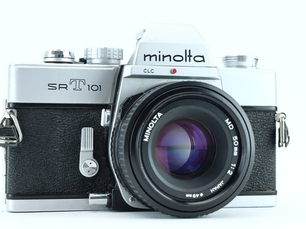 The Minolta SRT101 paired with the MD 50mm f/2 lens is a beloved classic among film photography enthusiasts. Known for its rugged build quality, precise manual controls, and reliable performance, the SRT101 is an excellent choice for those who appreciate the art of analog photography. The MD 50mm f/2 lens complements the camera perfectly, offering a standard focal length with a versatile aperture for a variety of shooting situations.