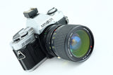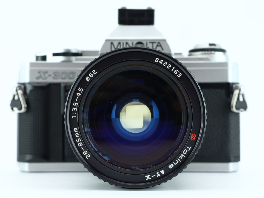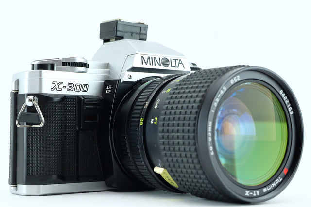 The Minolta X-300 + 28-58mm 3.5-4.5 camera features a high-quality lens with a wide range of focal length from 28mm to 58mm. This allows you to capture stunning photos from far away or close up. The wide aperture of 3.5-4.5 helps you to take pictures in low light environments.