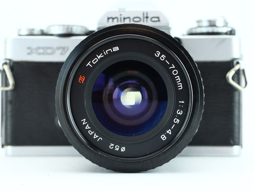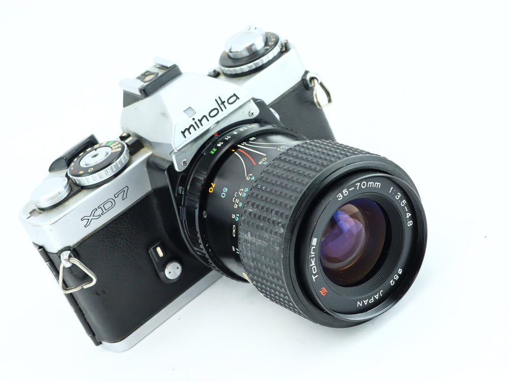 Explore the world of film photography with the Minolta XD7, paired with the versatile Tokina 35-70mm f/3.5-4.8 lens. The Minolta XD7 is renowned for its advanced features and reliable performance, offering both aperture-priority and shutter-priority automatic exposure modes. Combined with the Tokina 35-70mm zoom lens, this setup provides flexibility and creative control, making it perfect for capturing a wide range of subjects, from landscapes to portraits.