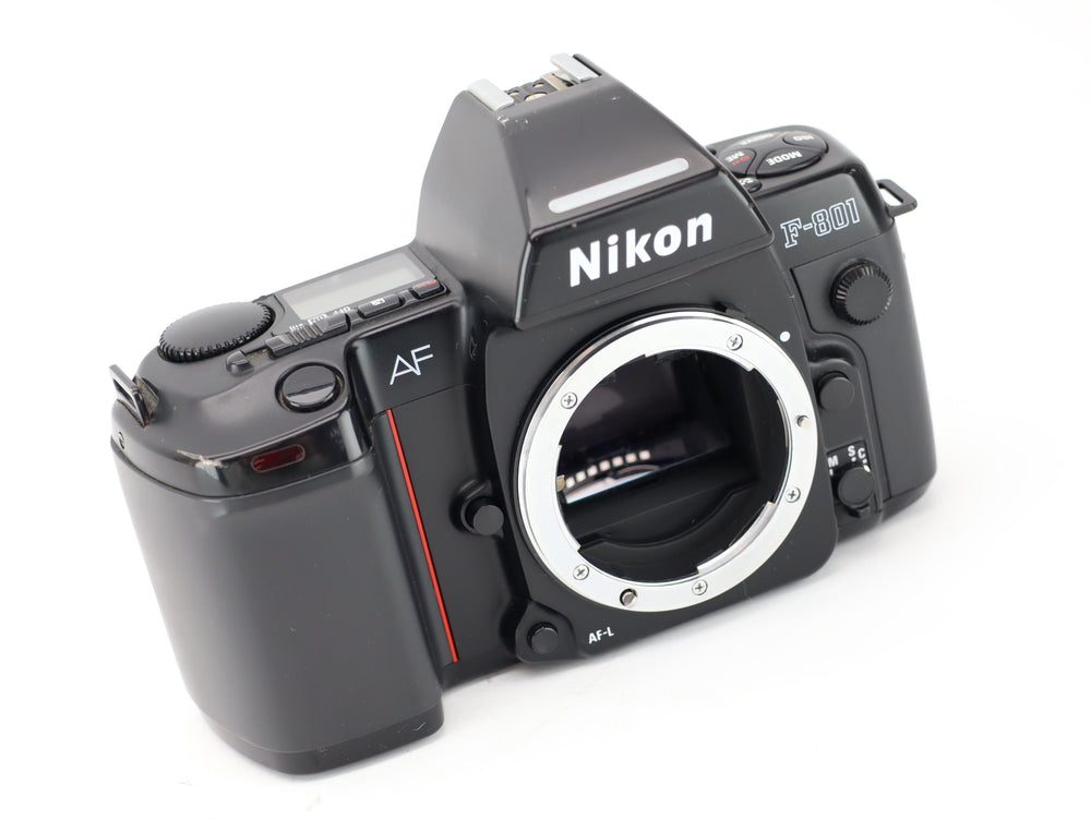 The Nikon AF F-801, also known as the N8008 in the United States, is a 35mm film SLR camera introduced in the late 1980s. It is renowned for its advanced autofocus system and robust build quality, making it a favorite among both amateur and professional photographers. The F-801 offers a combination of automated and manual controls, providing flexibility and precision in various shooting conditions.