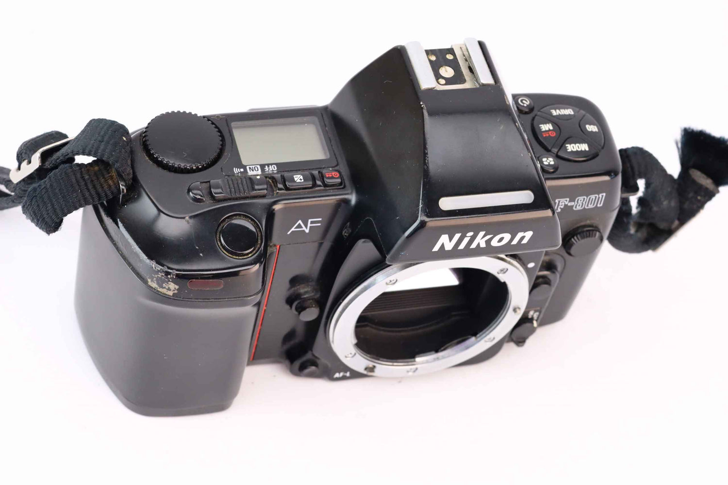 The Nikon F-801 (sold as the N8008 in the US market) is a 35mm SLR released worldwide in June 1988 and manufactured until 1991, when it was replaced by the improved Nikon F-801s (N8008s in the US), which in turn was discontinued in early 1995. Although its autofocus mechanism is slow in comparison to modern standards, it was an improvement on Nikon's first attempt at an autofocus SLR - the F-501 (N2020 in North America), and proved to be reliable and durable, typical of Nikon's cameras.