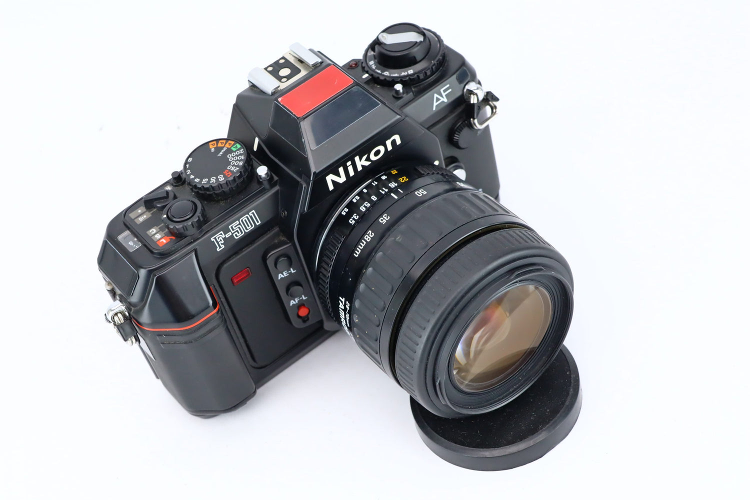Excellent Nikon F-501 28-70mm 3,5-4,5 DSLR camera. Tested and working only some sign of use on the camera. The mirror is clean.